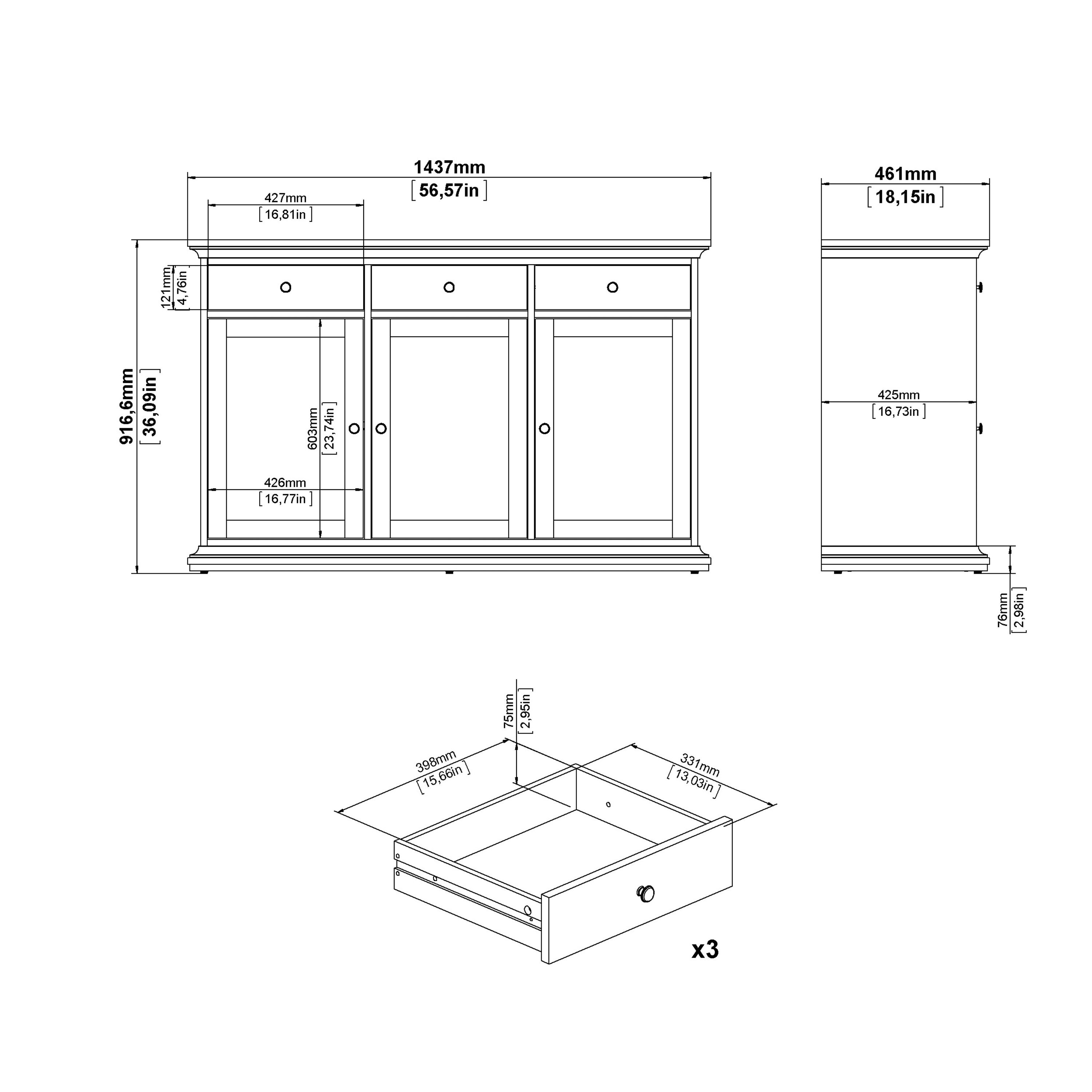 PORTHOPE Sideboard with 3 doors and 3 drawers in Matt Grey