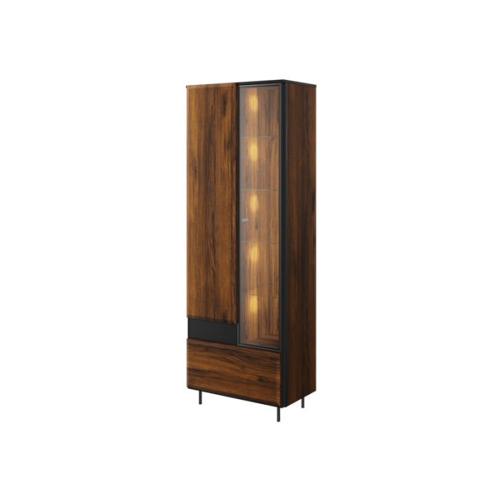 This tall wooden cabinet has numerous open and closed compartments and one drawer. It is a beautiful well-made piece which is sturdy enough to hold silver, China, glassware and many other valuables. The BG-02 serves as a fancy way to store and display your decorative collections.
