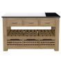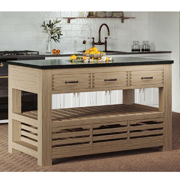 Introducing the newest addition to our Kitchen Islands Collection, this kitchen island is both stylish and practical. With a sleek black granite top, braked wheels for easy mobility, and two exposed dovetail joined drawers on each side, it offers ample storage and workspace. Additionally, the two open storage shelves provide convenient access to commonly used items.