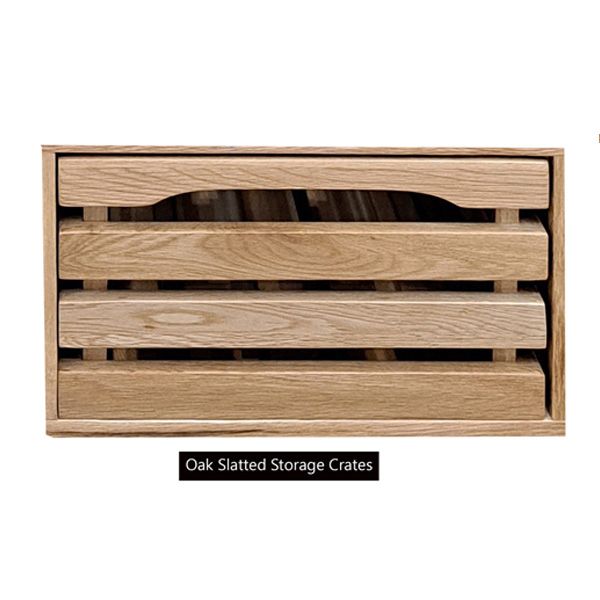 - The three oak slatted crates as two-way drawers and can be opened from both sides