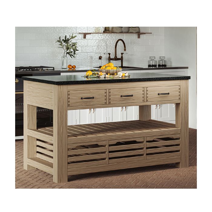 Premium Black Granite Kitchen Island with Exposed Dovetail Three Drawers
