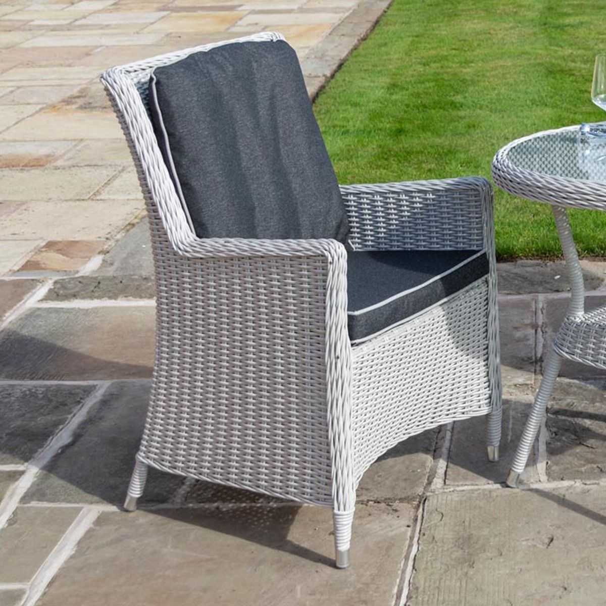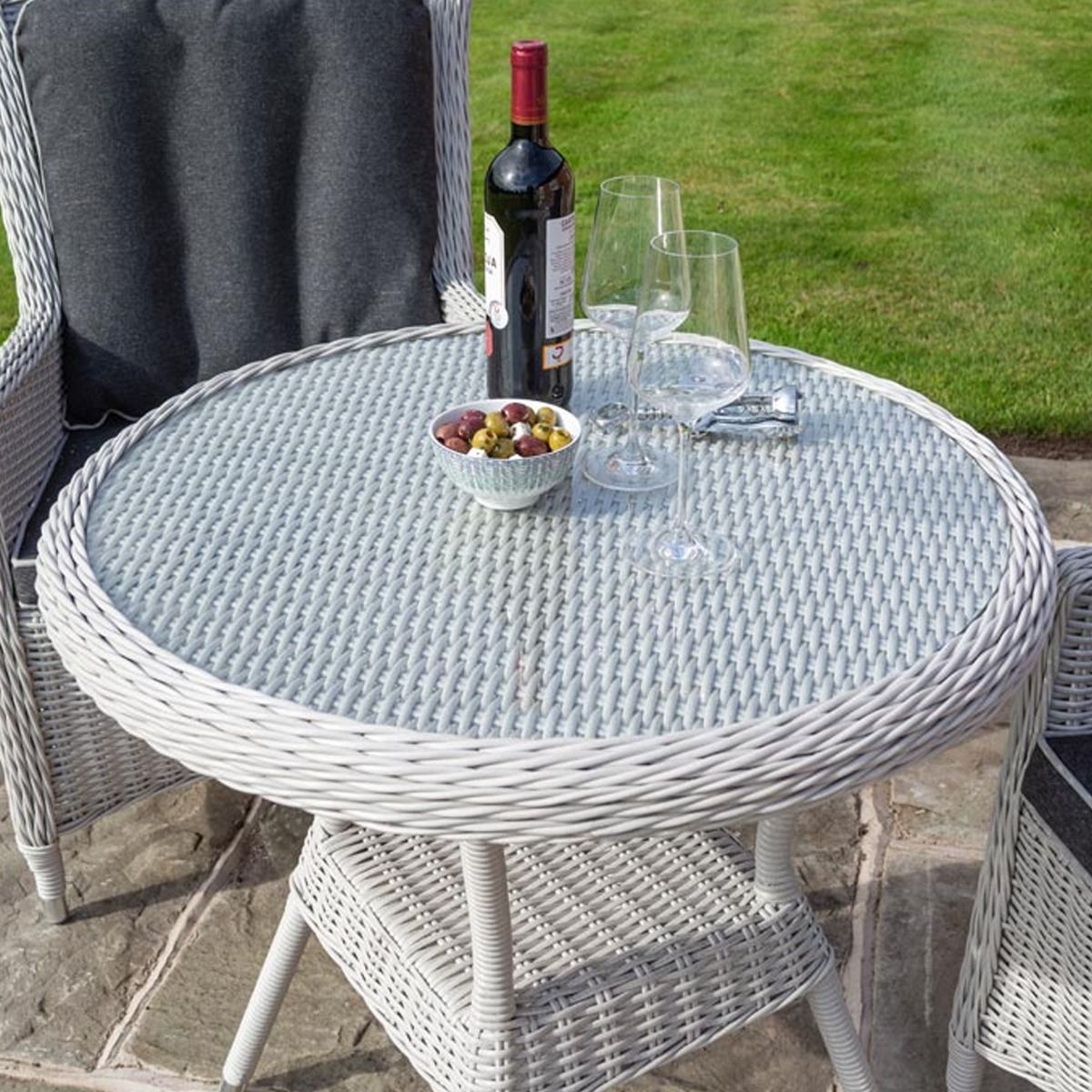 Prestbury Rattan Effect Weave Three Piece Bistro Set with Cushions and Seat Pads
