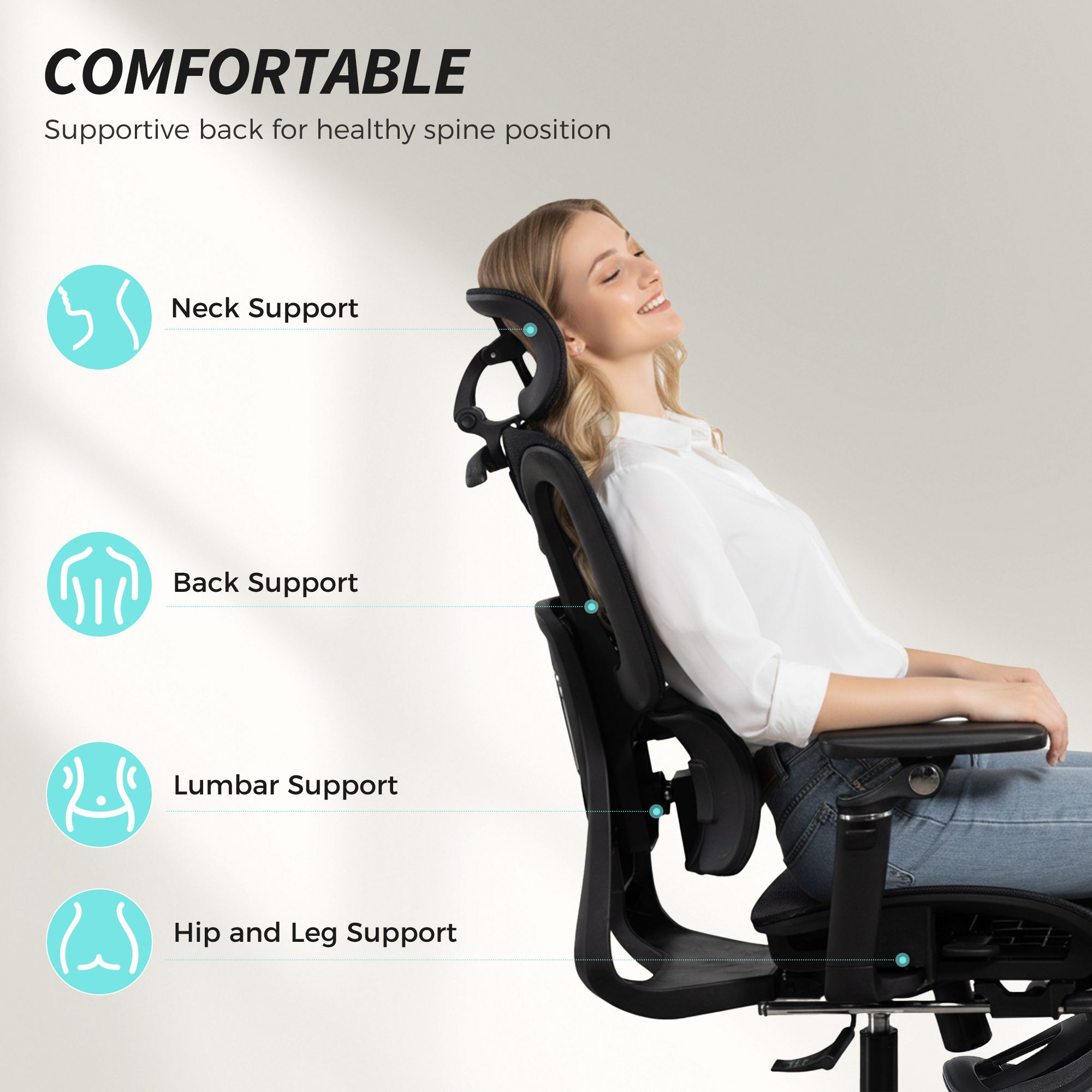 Ergonomic support: customise your comfort with this executive office chair, featuring an adjustable headrest, backrest, lumbar support, seat depth and armrests for proper support throughout your working day. Its flexible design adapts to users up to 185 cm. Adjustable separated back & lumbar support: this office chair features a dual-zone backrest with 5 cm height adjustment and three-stage lumbar support that moves forth/back by 2 cm and folds on both sides, easing back pressure and promoting healthy posture. 6 d armrests: this desk chair features fully adjustable armrests—5 cm up/down, forth/back, swivel up/down, rotating armrest rod, rotating arm pad, or flip up to free space when not in use—keeping your arms and shoulders supported while maximising workspace. 135° recline with footrest & smooth rocking: this ergonomic office chair allows you to shift effortlessly from focused tasks to relaxing breaks. Recline for restful naps, extend the footrest for optimal comfort, or enjoy smooth rocking during downtime. Breathable mesh & solid build: