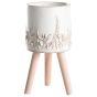 Style your flowers in this beautiful plant pot, designed to be as eye-catching as it is practical. Made from robust magnesium oxide and set on elegant wooden legs, it works just as well indoors as it does outdoors. The handmade details and subtle floral pattern add a lovely decorative touch that brings your greenery to the centre of attention.