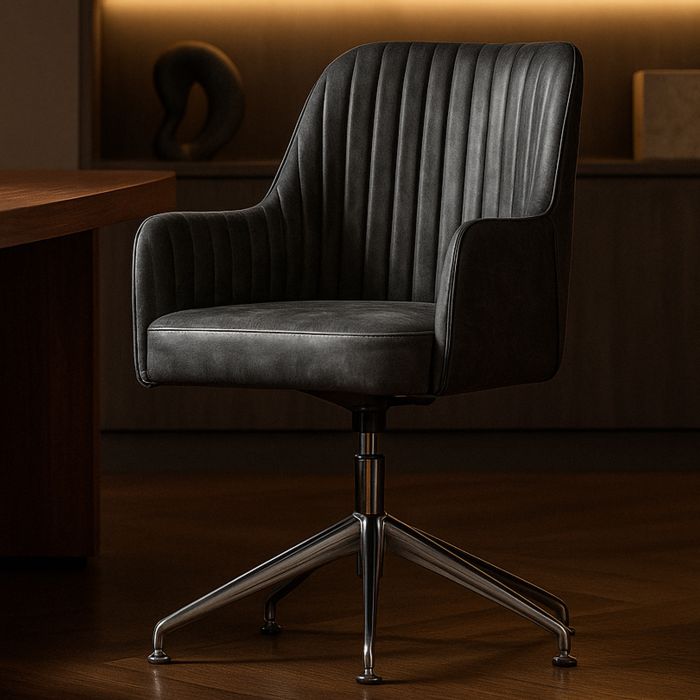 The PRIMROSE Leather Swivel Chair - Black combines modern craftsmanship with a touch of traditional charm. Built to last and styled for versatility, it enhances any space effortlessly.
