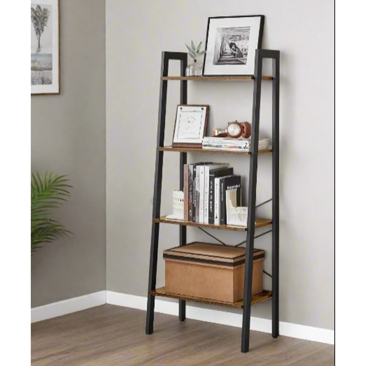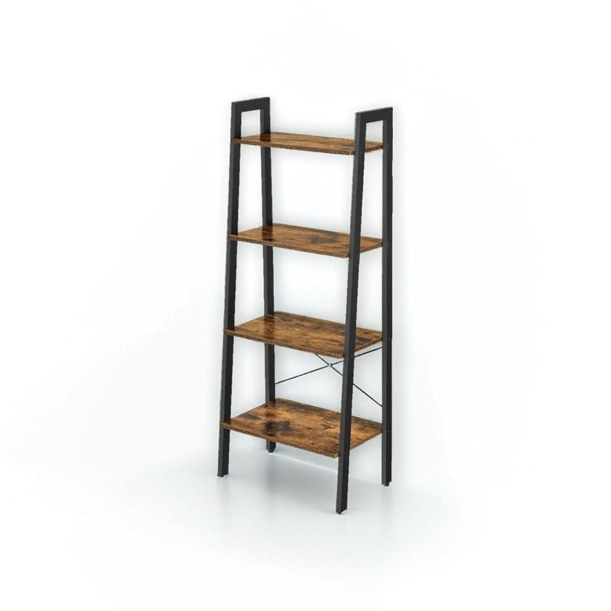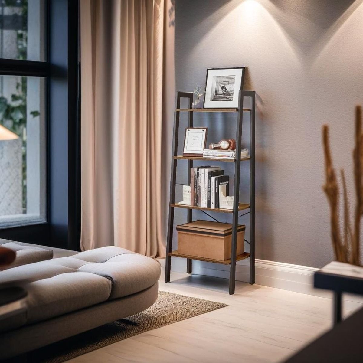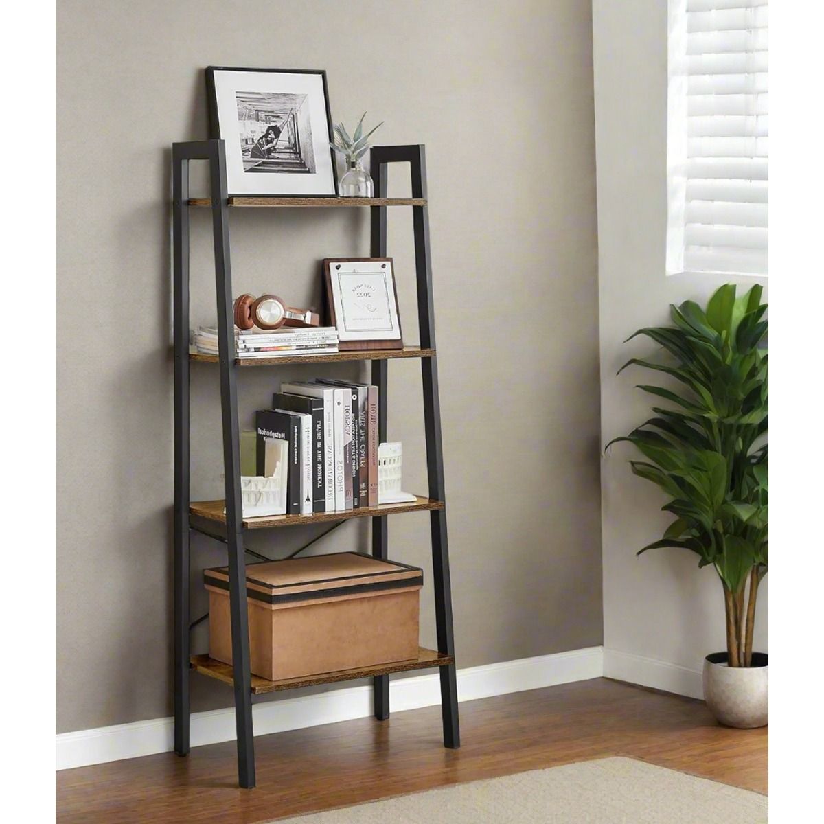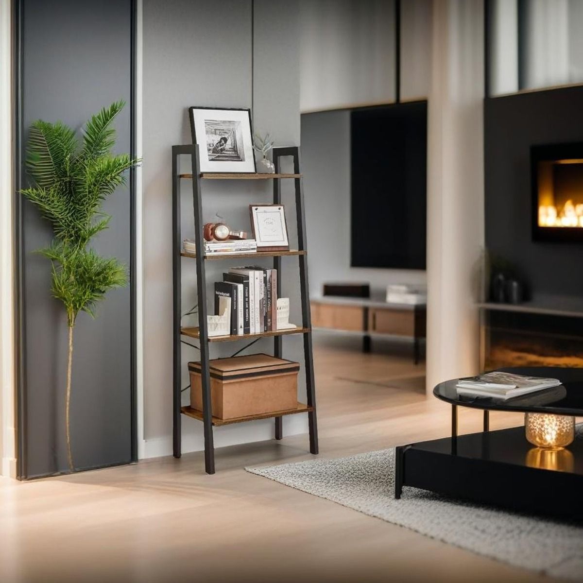 PRISTANE Ladder Shelf 4-Tier Rustic Display Bookcase - Rustic Brown