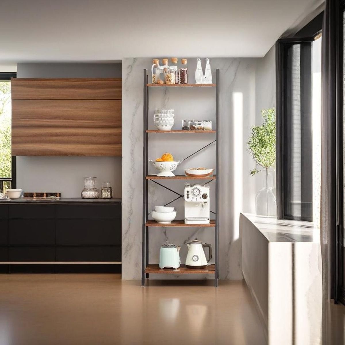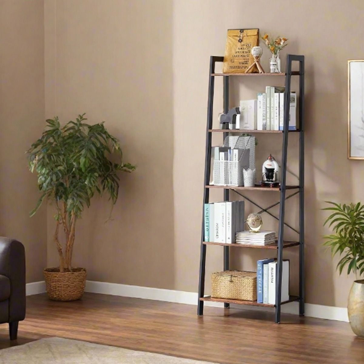 PRISTANE Ladder Shelf 5-Tier Bookcase and Plant Stand - Rustic Brown