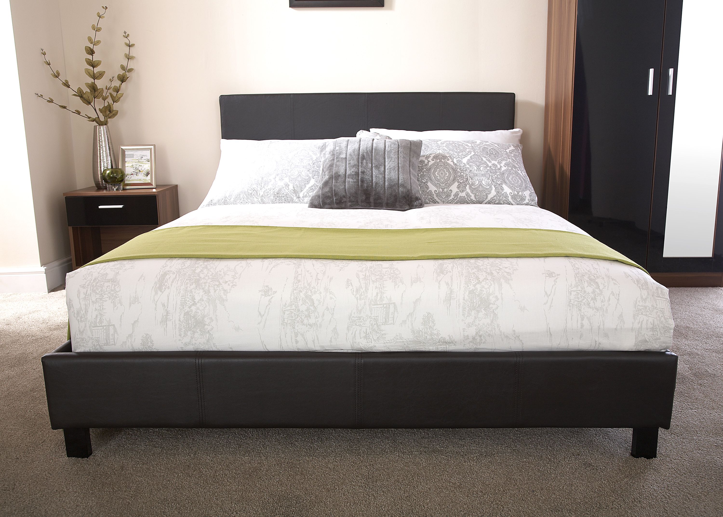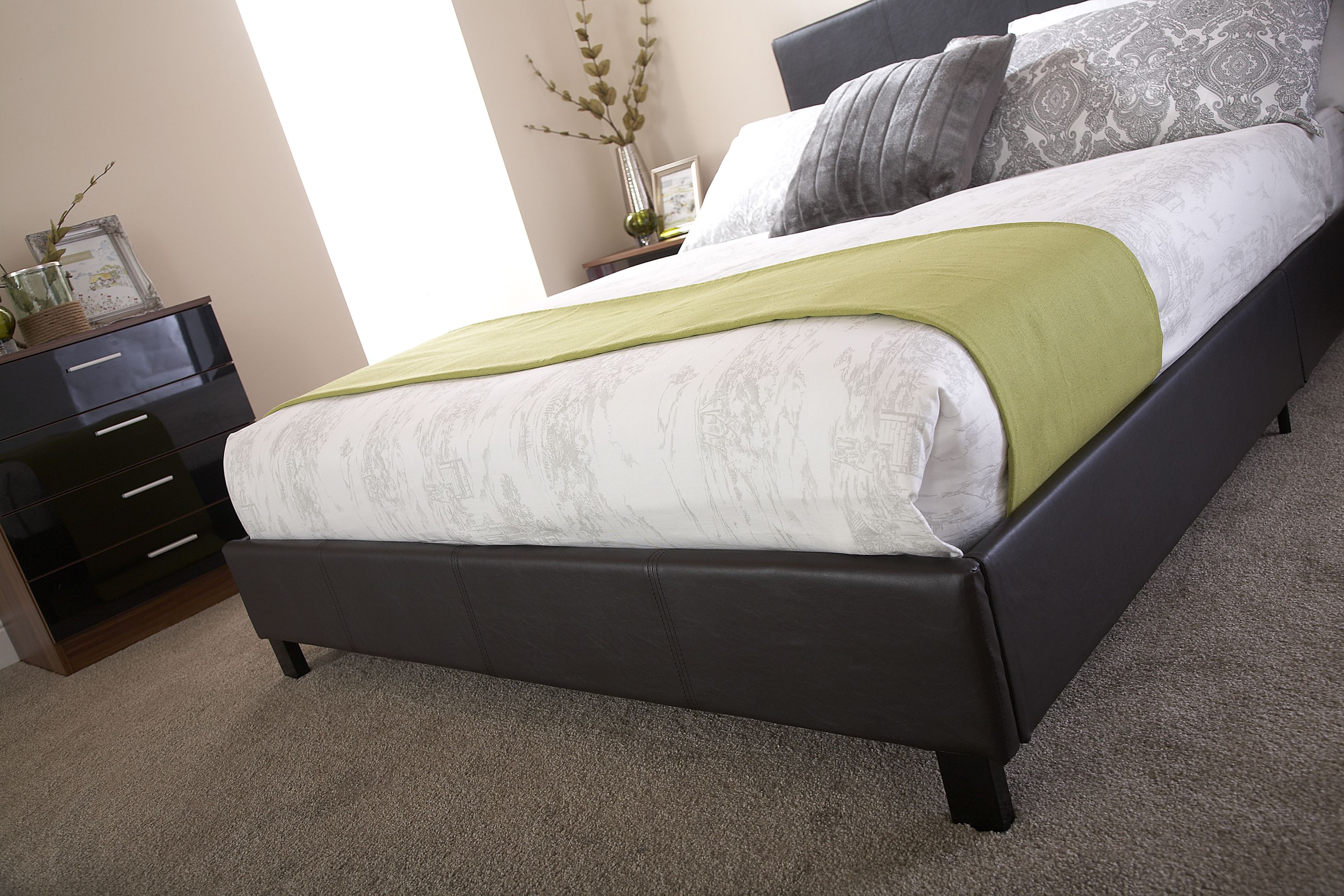 This contemporary bed frame comes in a number of sizes, colours and fabric options. Finished in a rich faux leather, this range will appeal to all. The headboard features a subtle stitched design which adds an extra dimension to this great bed. Sprung slats come as a standard and best of all and this bed comes ALL IN ONE BOX