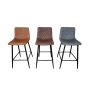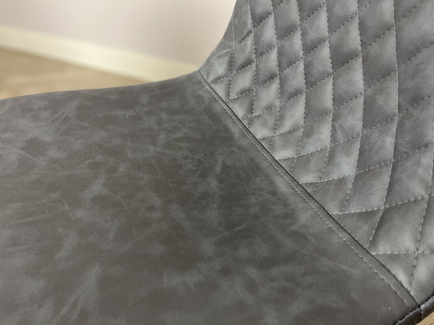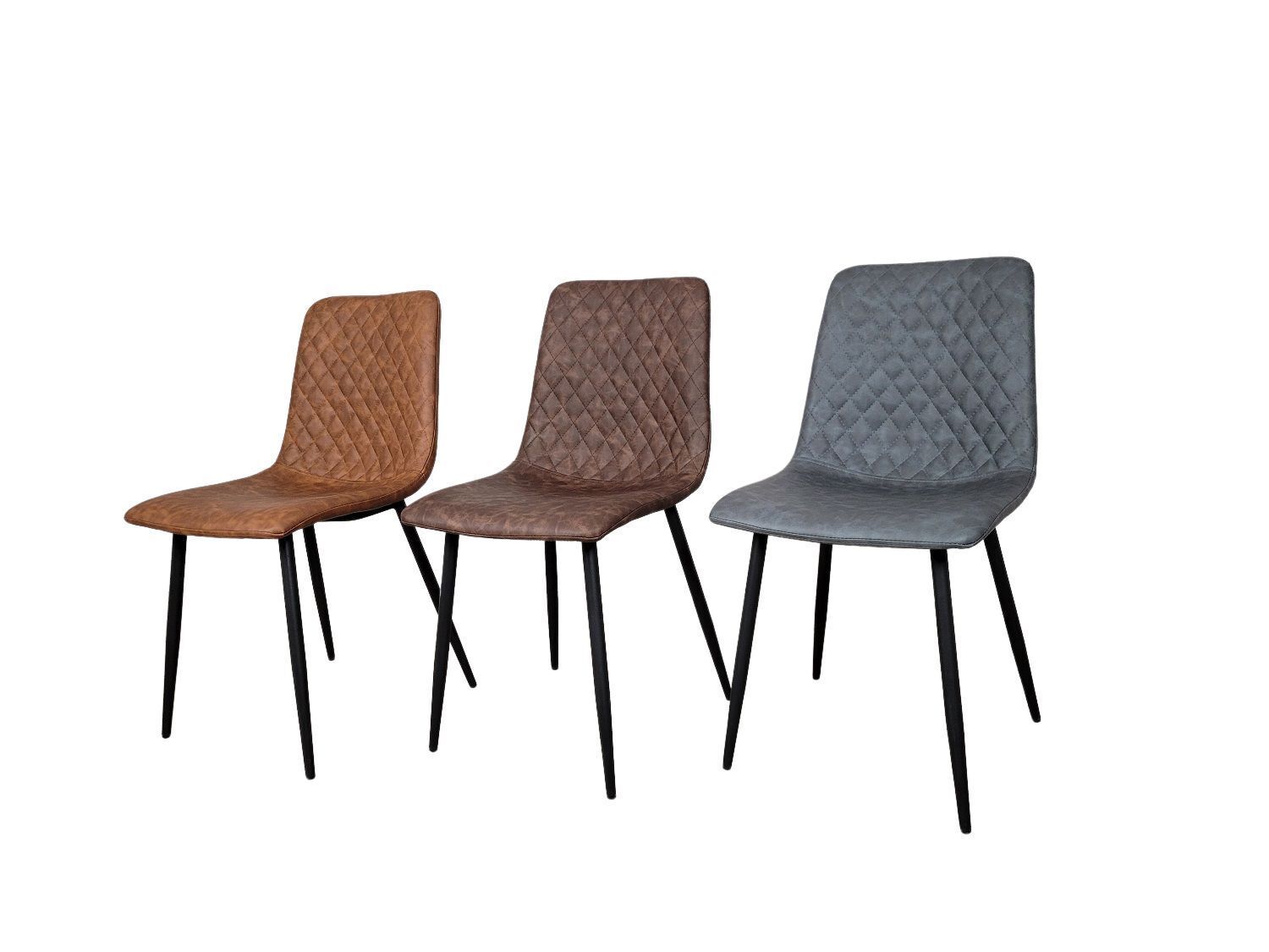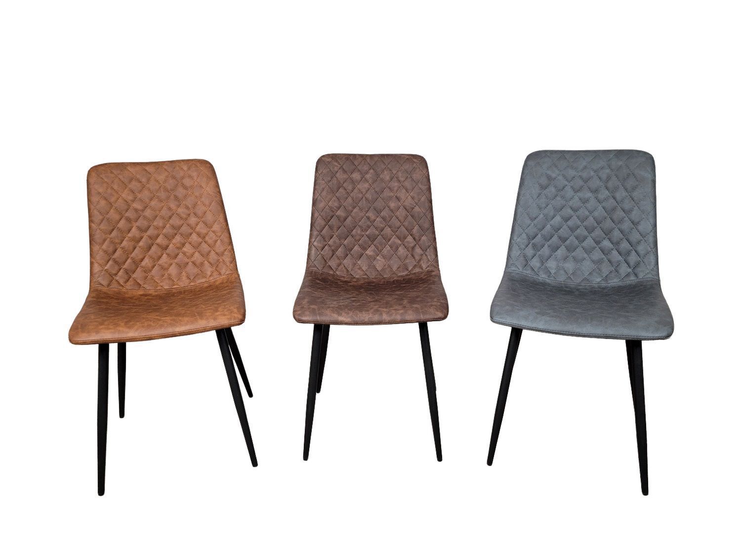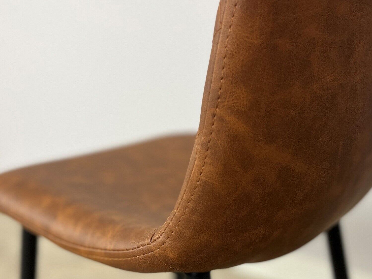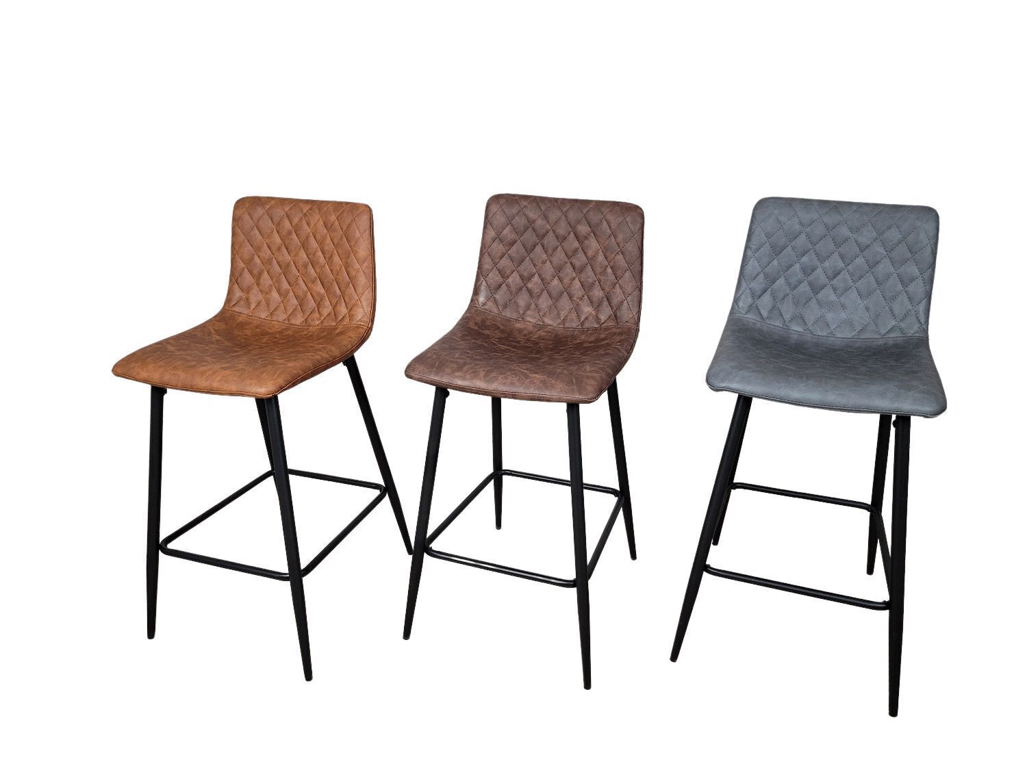 Our Exclusive style dining chairs & Bar stools boast a modern style design with a black metal powder coated leg frame and tan, brown or Grey distressed PU leather fabric upholstery. Upholstered in a high quality Tan, Grey or Brown distressed PU leather giving it a quality authentic feel and durability. The leather effect is distressed to add to its authentic industrial and retro look. The open back seat is quilted with curved pipped edging to provide comfort and support, finished in a diamond stitch pattern. The stylish and practical design allows the stool to push and store underneath the breakfast bar or kitchen island. And the chair to be pushed underneath the Dining Table The black metal leg frame offers a sturdy base and adds to the industrial style. The perfect addition to the home or ideal for bars, bistros, cafes, restaurants and pubs.
