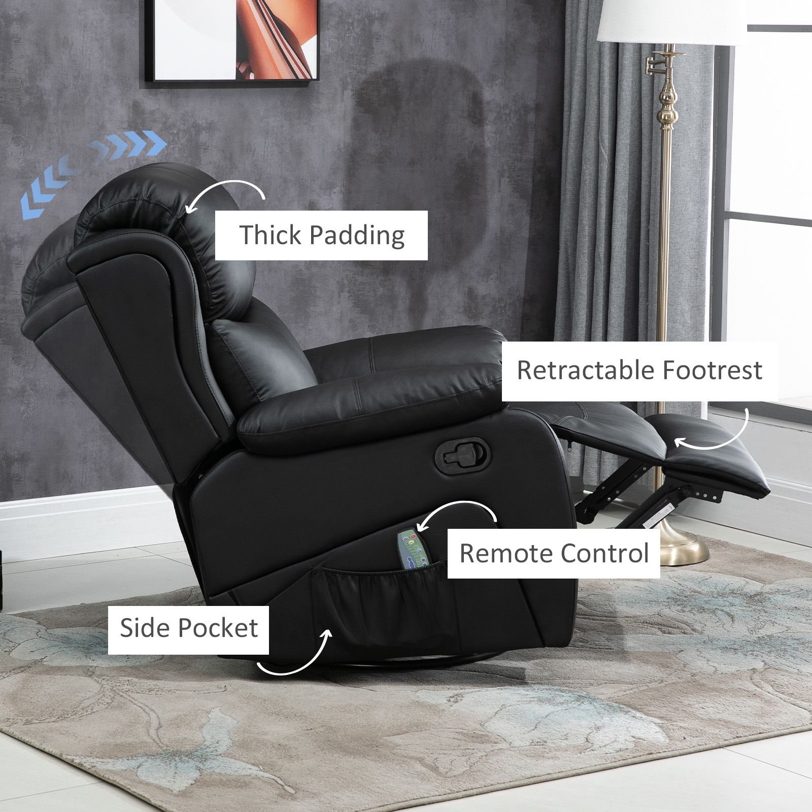 PU Leather Reclining Chair with 8 Massage Points and Heat, Manual Recliner with Swivel Base, Footrest and Remote, Black