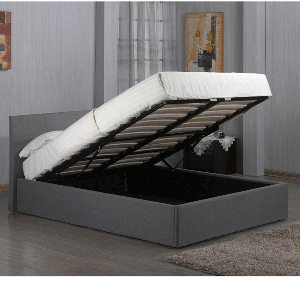 Purbeck Grey Fabric Storage Ottoman Bed with Gas Lift - Small Double Bed
