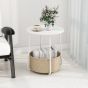 PVARO 2-Tier End Table with Fabric Storage Basket and Metal Frame-White