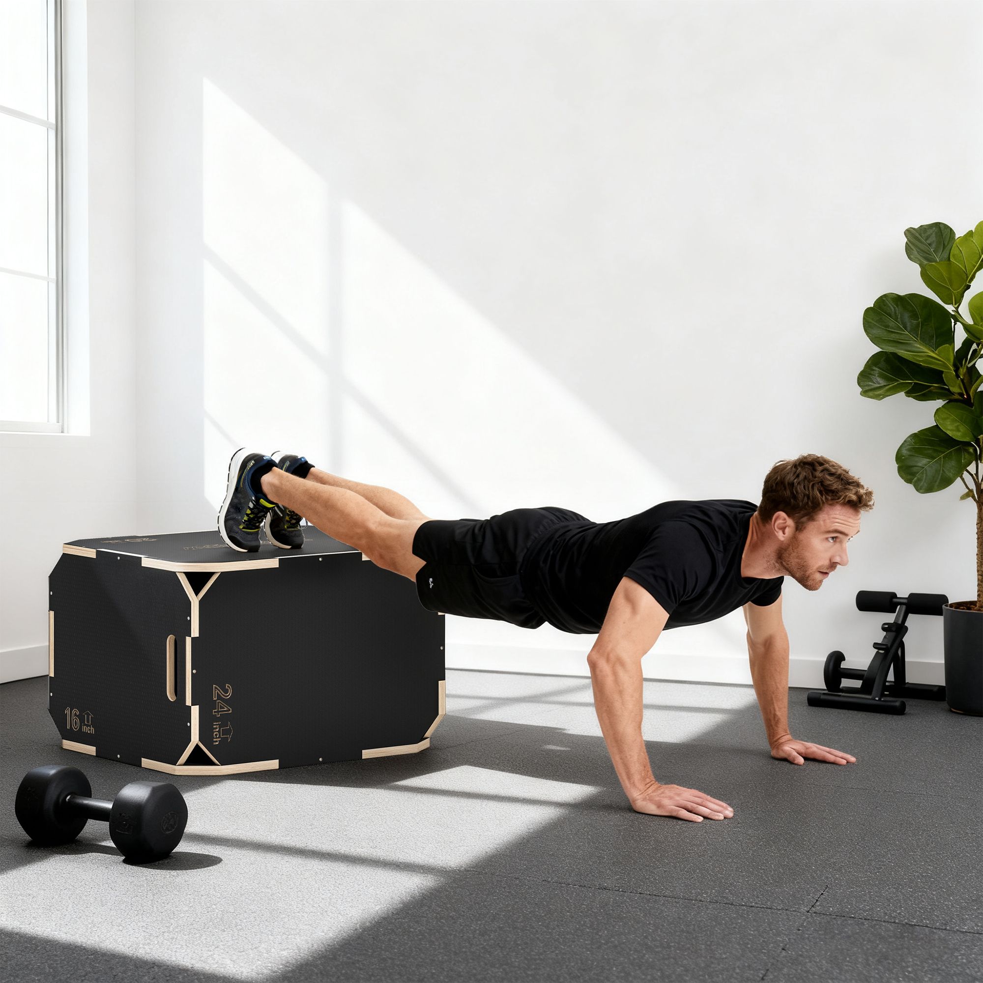 QORVANNIS Non-Slip Plyo Corner-free Wooden Jump Box Black - 20 Inch