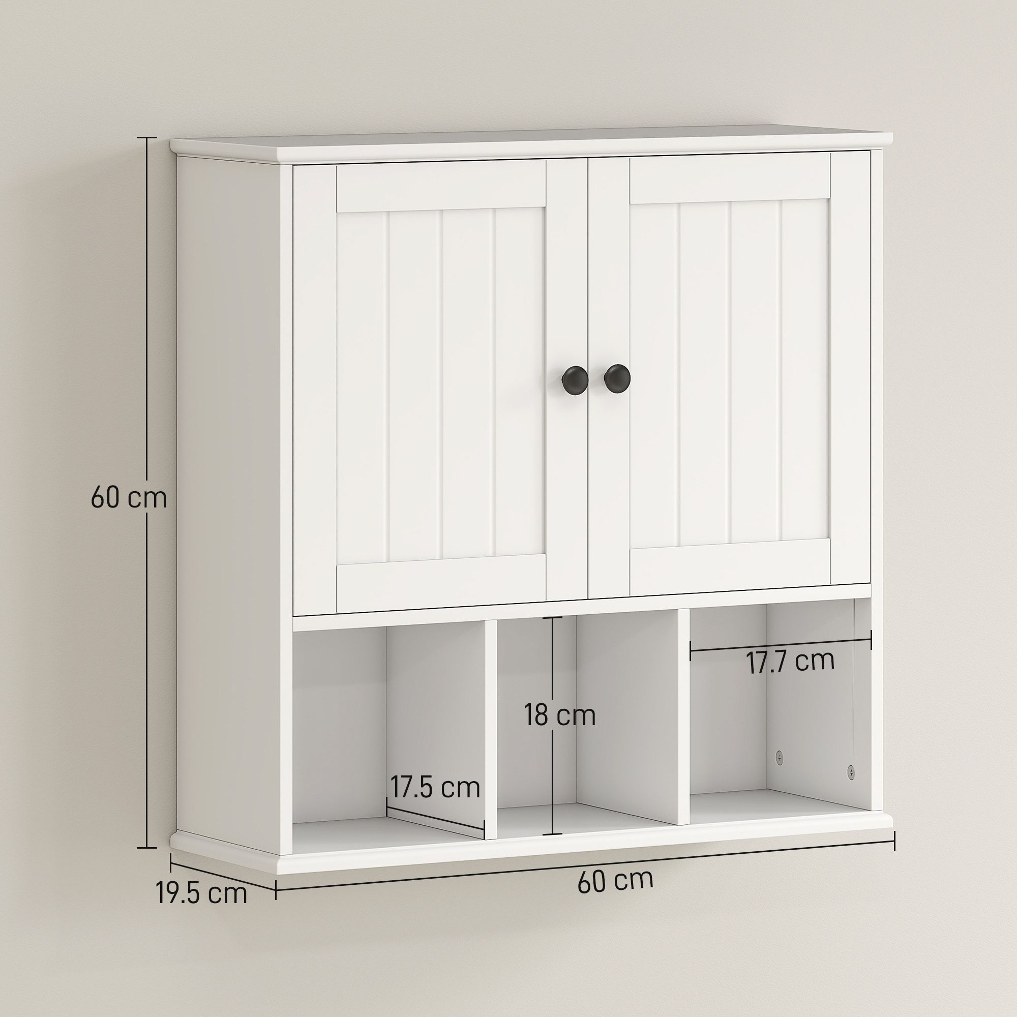 QORVELLE Wall Monted Bathroom Cabinet with Adjustable Shelf and Open Compartment - White