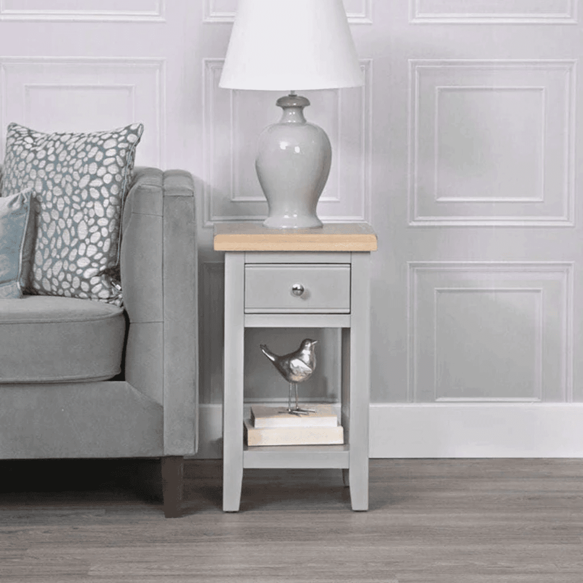 - 1 Drawer Lamp Table in Grey with Oak Top