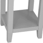 Elevate your home decor with the Quantum 1 Drawer Lamp Table featuring an oak top in a stylish grey finish. This lamp table comes fully assembled and showcases elegant tapered legs along with a convenient storage shelf. With its chic chrome handles, it's the perfect combination of style and functionality.