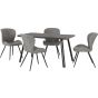 Quebec Wave Edge Dining Set - Black Wood Grain Black Grey Faux Leather