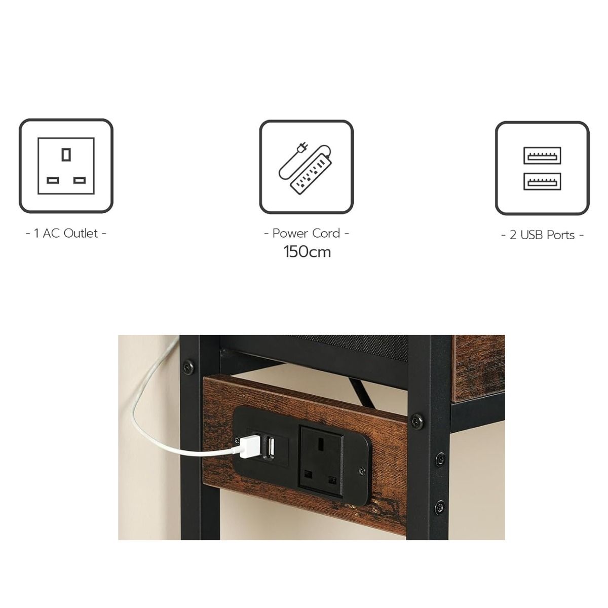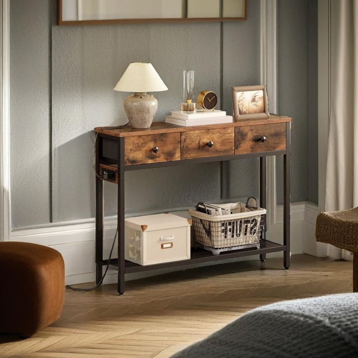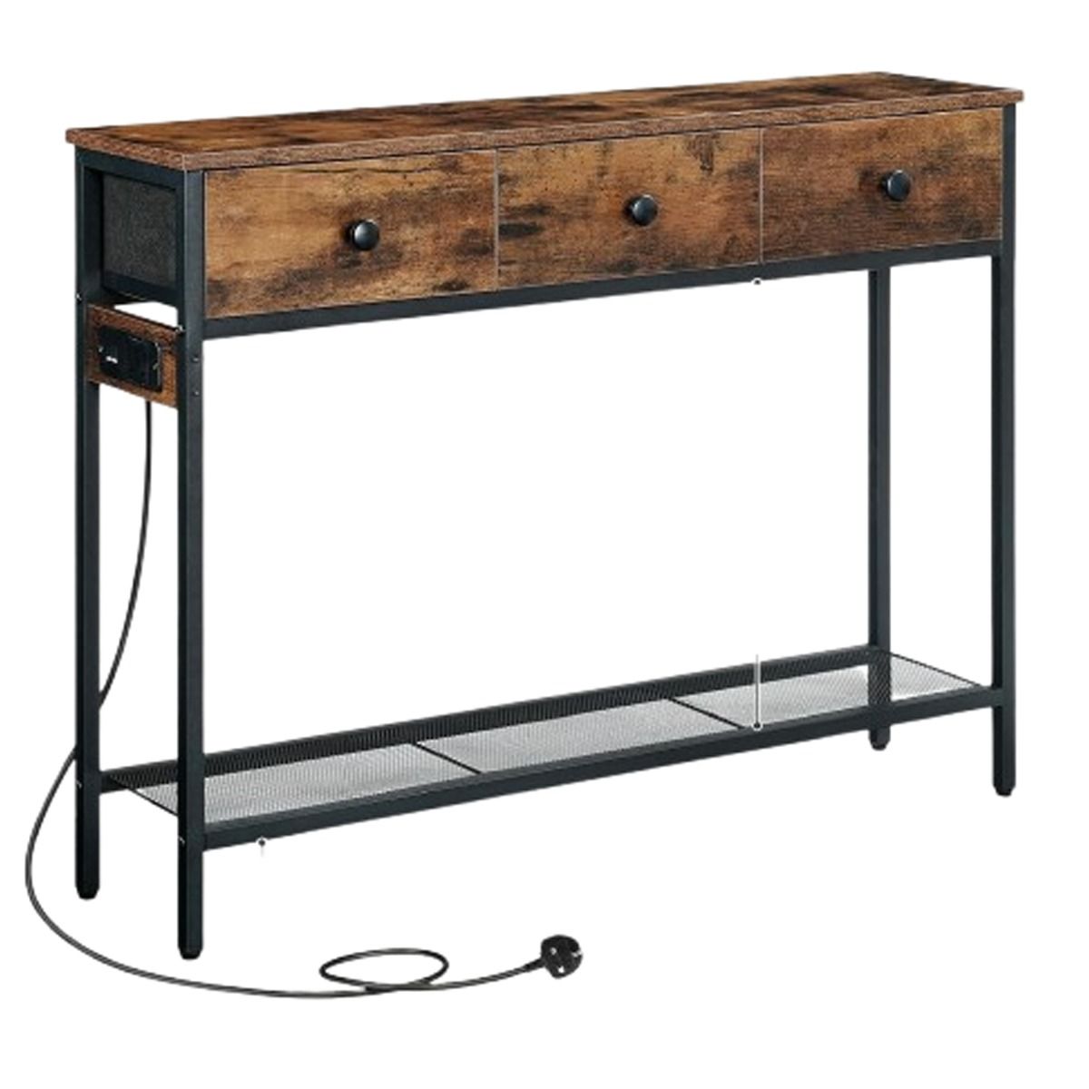 QUENTARA Console Table Slim Entryway Table with Power Outlet and 3 Fabric Drawers - Rustic Brown