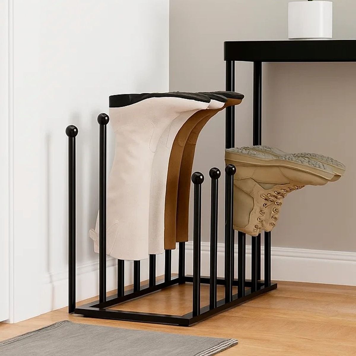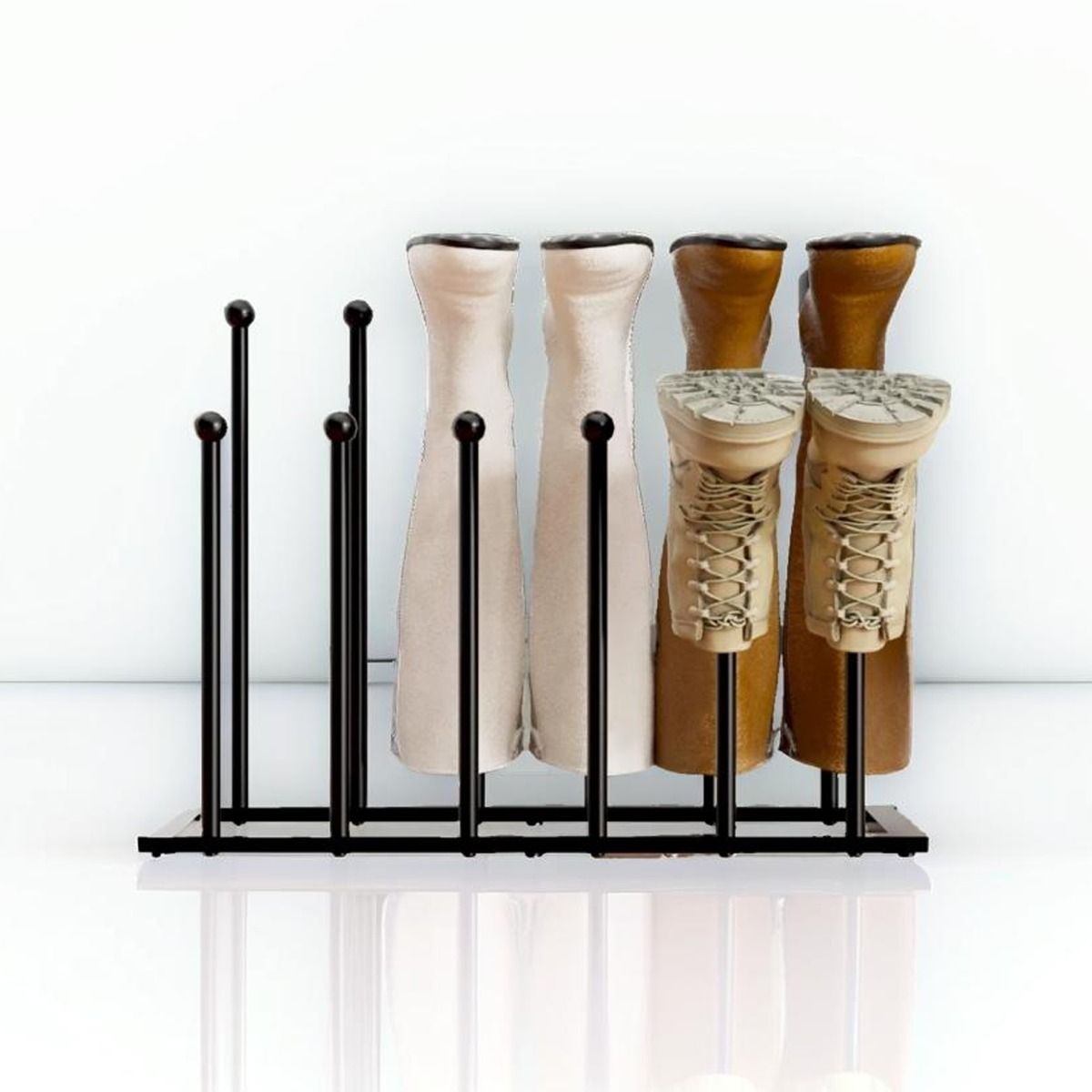 QUENTARA Free-Standing Metal Boot Rack for Tall Shoes - Black