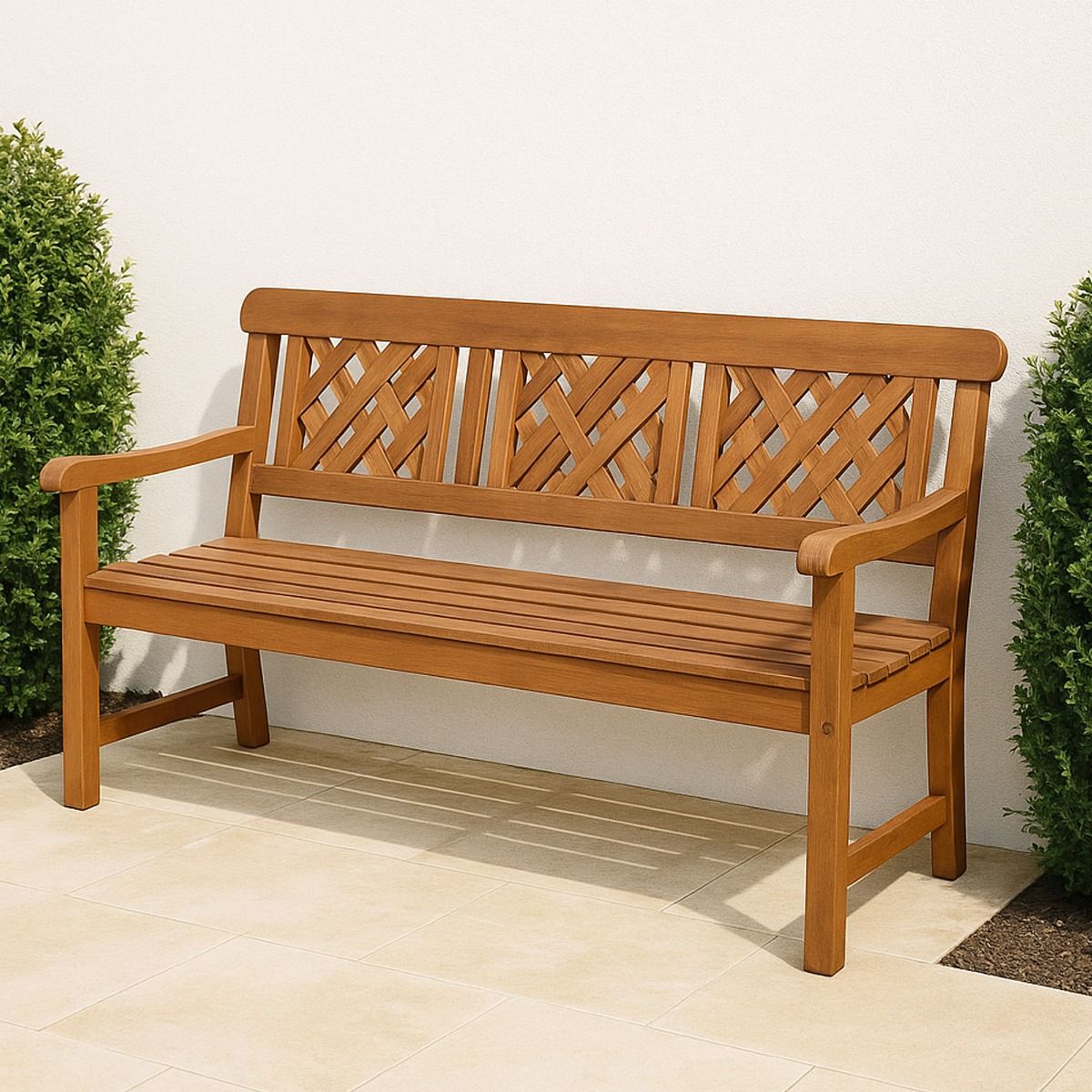 QUENTARA Garden Bench 3-Seater Hardwood Outdoor Bench Eucalyptus Wood - Brown