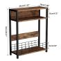QUENTARA Side Table 3-Tier Slim Enad Table for Small Spaces - Rustic Brown