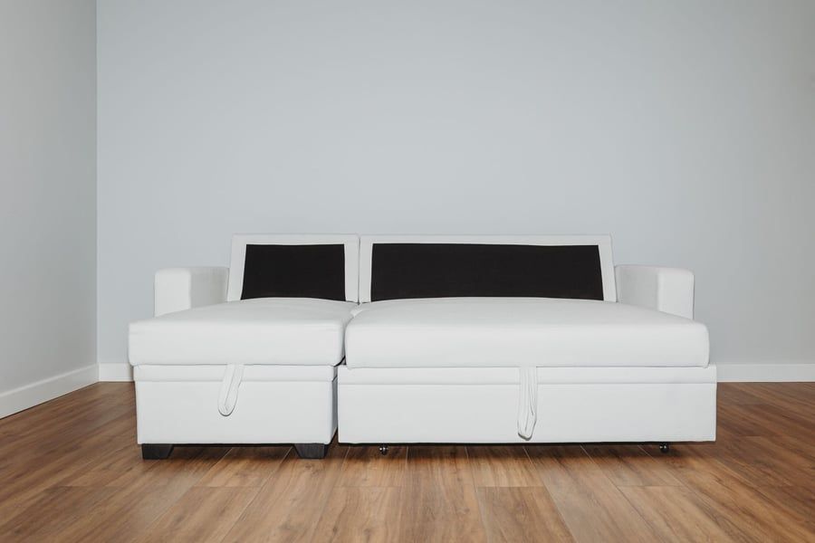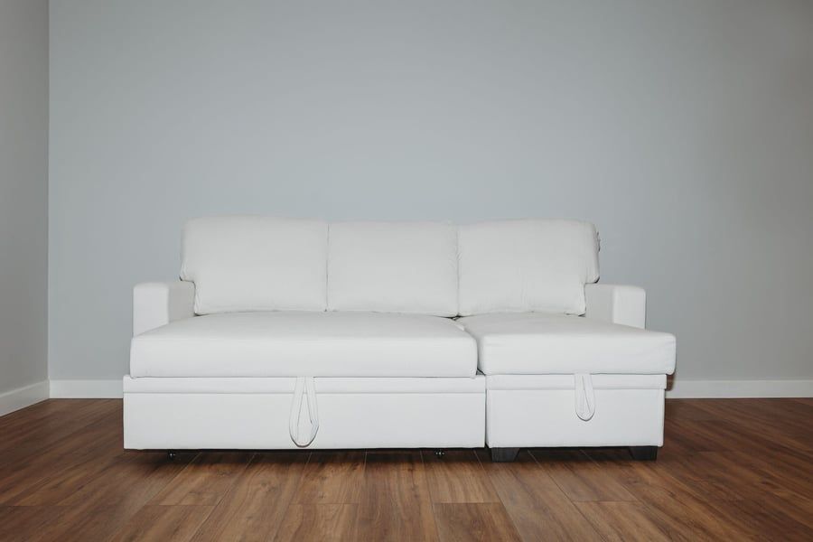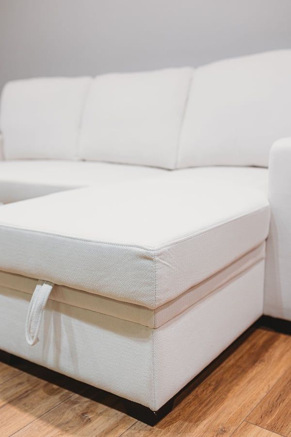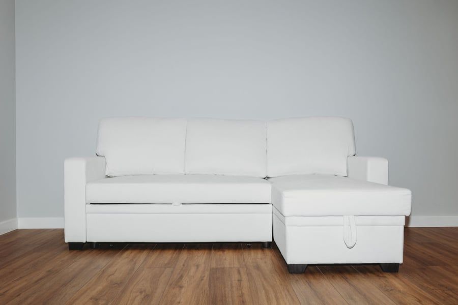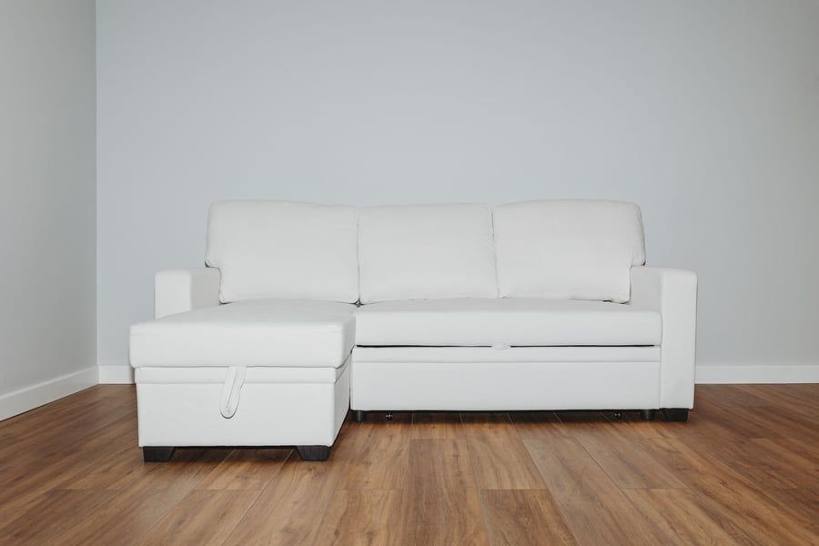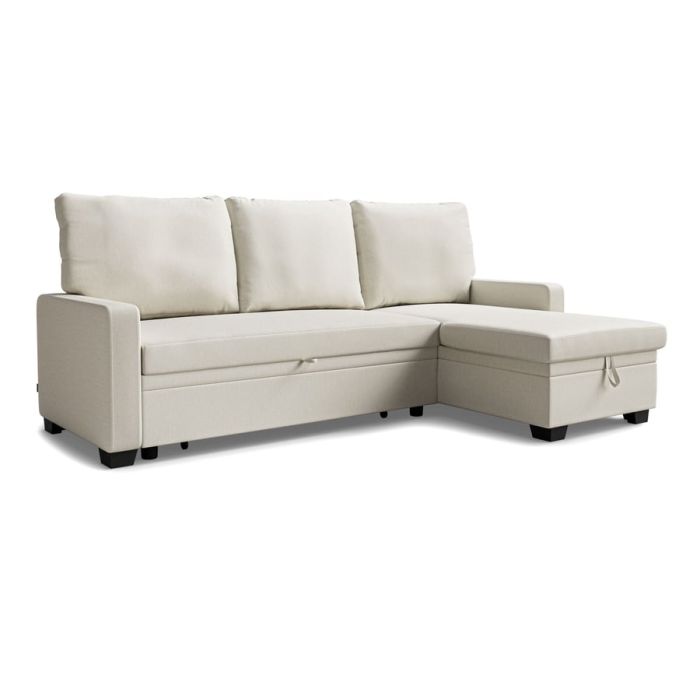 QUINDLE Fabric 3 Seater L Shaped Corner Sofabed - Cream, Reversible Facing