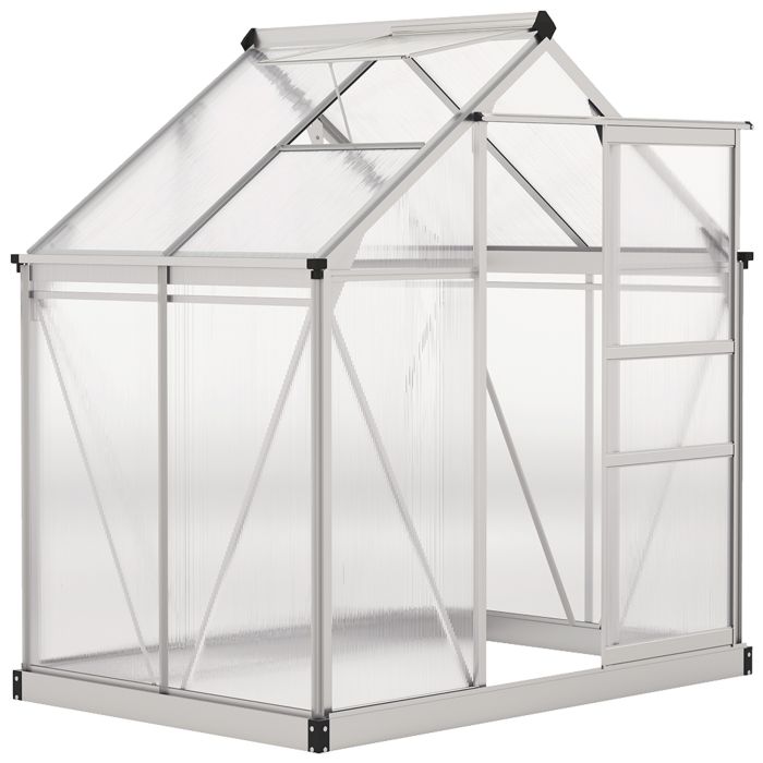 QUINDLETON Walk In Polycarbonate Greenhouse 6x4ft - Silver