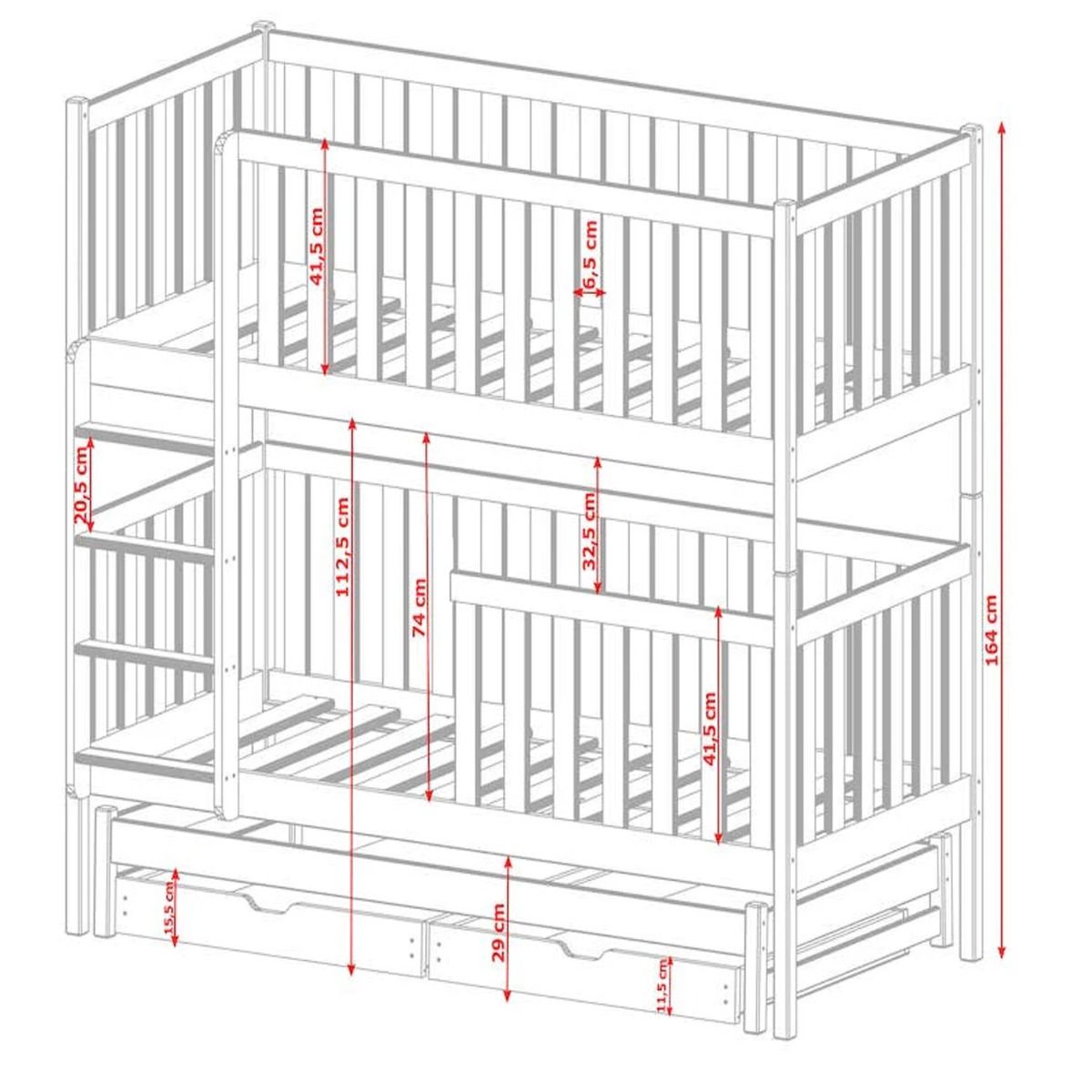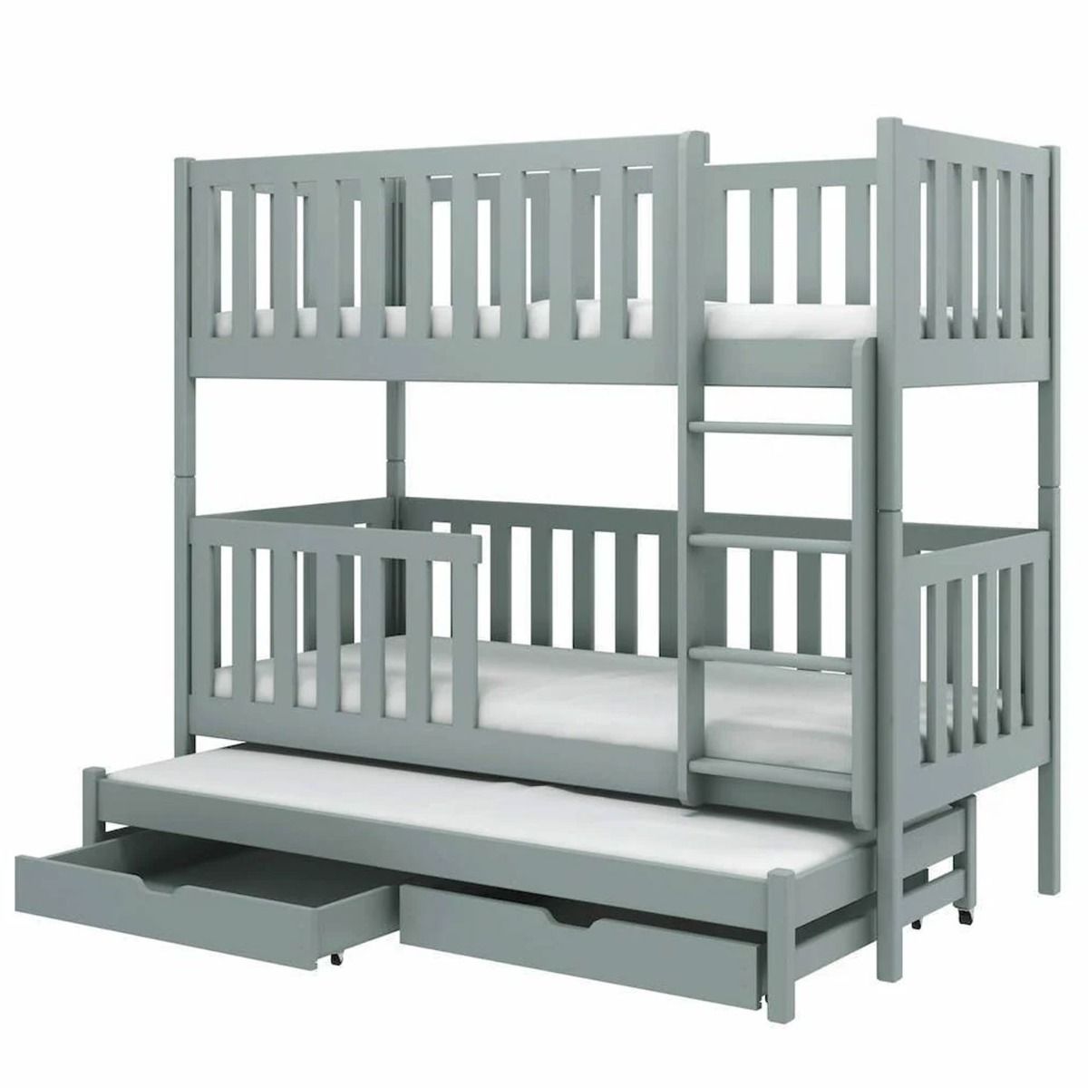 Elevate your child's room with the stylish Quinx Bunk Bed in Grey – a perfect blend of elegance and functionality. Crafted from solid pine wood and adorned with a three-layered water-based paint, this bed ensures durability and a health-conscious choice. The universal ladder provides flexible placement, while non-removable safety guards ensure a secure sleep environment. Transformable into three separate beds, it adapts to your growing needs. With a slatted pinewood base, under-bed storage, and a trundle bed designed for a Foam/Bonnell Mattress, it's a chic and practical solution for your child's comfort.