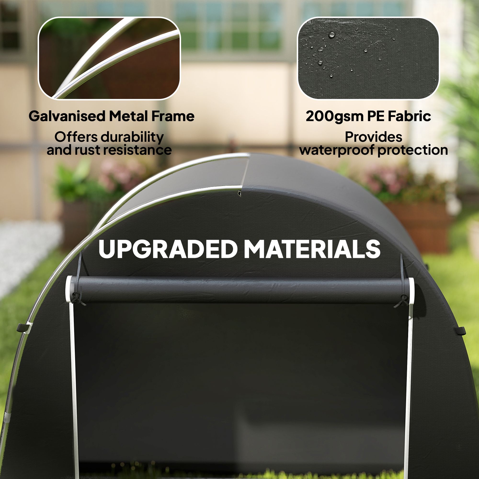 QUORNDALE Garden Storage Tent 8 x 4ft Waterproof Bike Shelter - Dark Grey