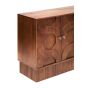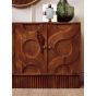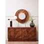 The QUORVETH four-door mango wood sideboard features a carved pattern with hammered details, offering stylish and ample storage.