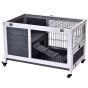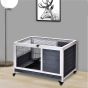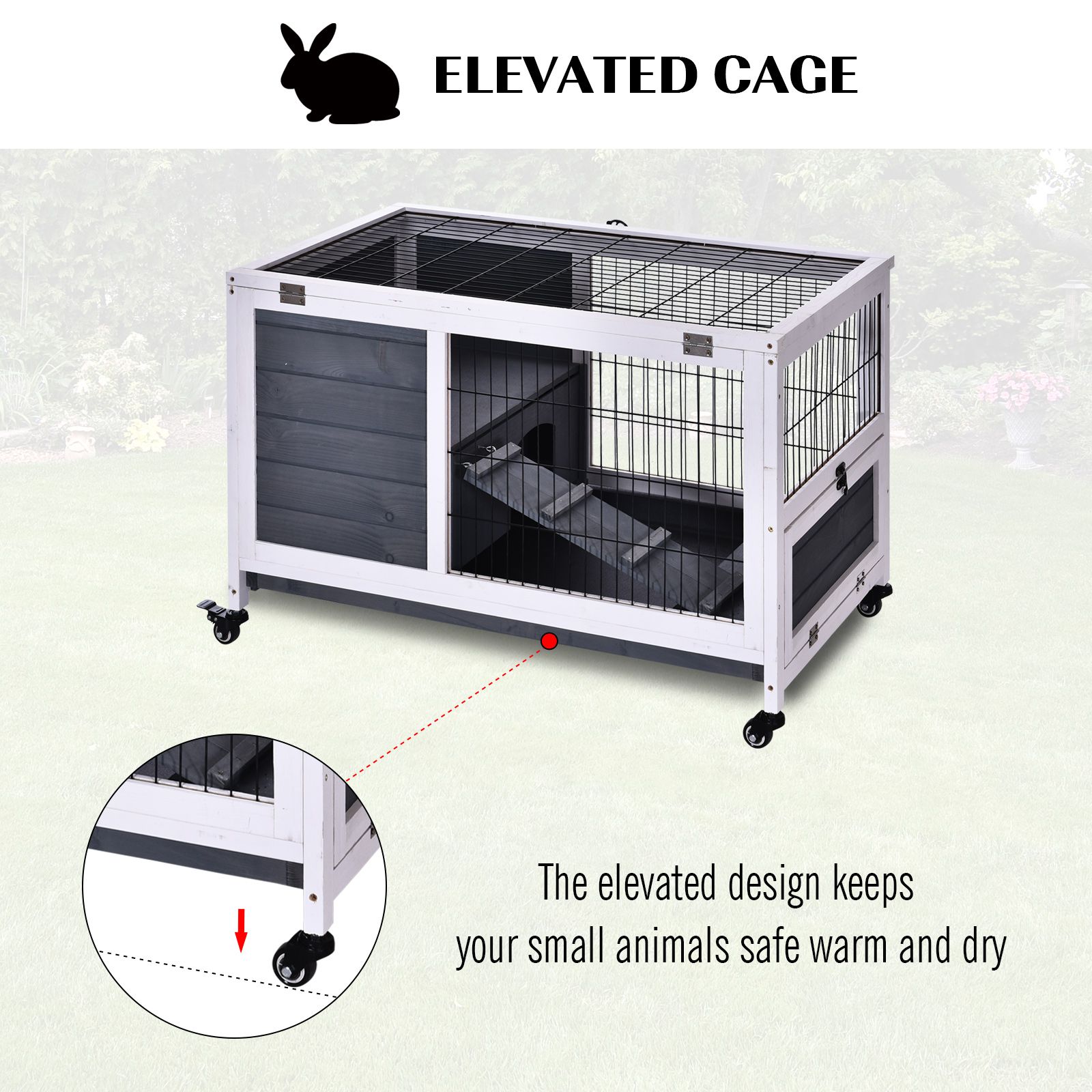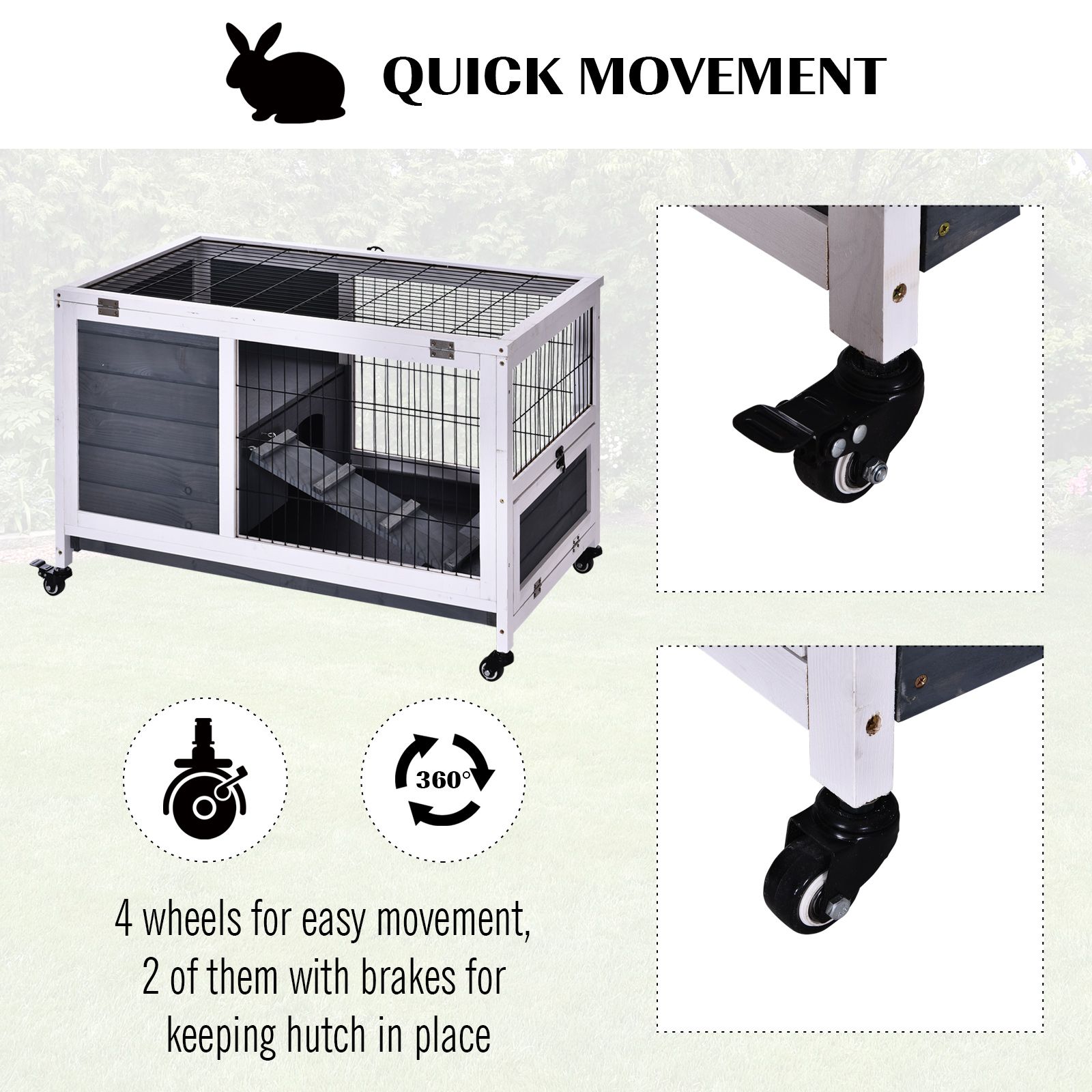 - EASY ACCESS: Opening roof, combined with the secure doors and pull-out tray to get inside to clean and give your pet food, with mesh write all around for security. FOUR WHEELS: Allows the hutch to be moved around easily. Two can be locked to keep in place when needed.