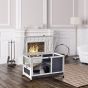 Give your rabbit their own private space, even when they’re indoors with this rabbit hutch from. Using fir wood for the body to ensure it is tough and durable, it is made into a compact 59cm x 909cm design to fit into smaller spots whilst utilising the space efficiently with its bottom house, rooftop and ramp, which connects the rooftop to the open bottom space – giving your rabbit plenty of different places to move about and rest. An openable roof, locking doors and slide-out tray ensure easy access, with metal wire fencing for safety and four wheels (two of which lock) for it to move around easily and stay in place when needed. Great for when you keep your eye on your bunny when you’re indoors.