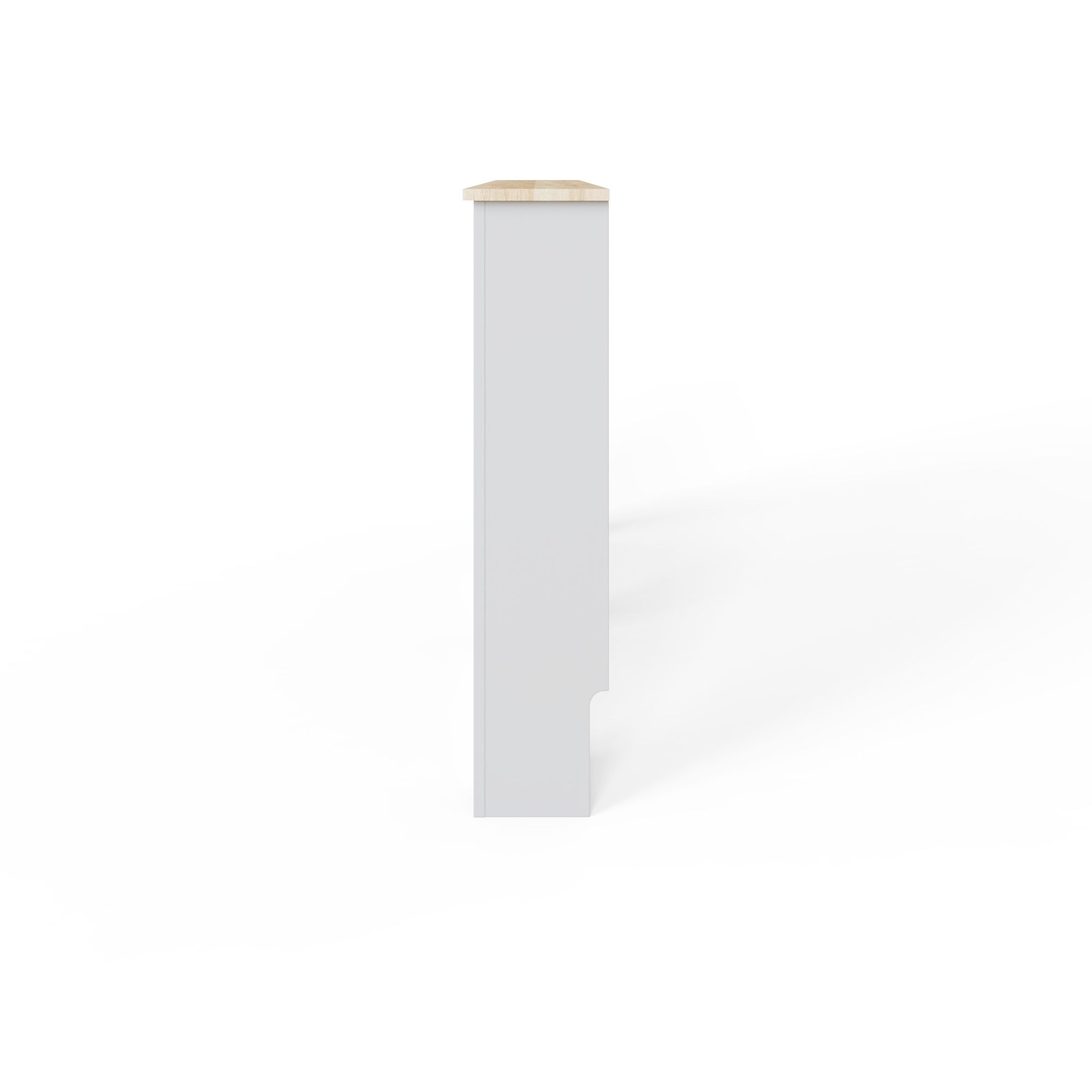 Elevate your home’s aesthetics with the Emily Radiator Cover, available in both sleek grey and classic white finishes. Perfectly blending with contemporary interior designs, this cover combines painted and melamine surfaces to ensure durability and ease of maintenance. The Emily Radiator Cover not only adds a touch of elegance to any room but also provides a practical solution for concealing your radiator. Create a warm and inviting atmosphere while keeping your living space organized and stylish with this elegant addition. The cover features a vertical slat grill pattern that exudes sophistication and style, with rounded edges to ensure safety. The top shelf provides an ideal space for displaying decorative items, storing books, or placing photo frames. This design not only enhances the aesthetics of your room but also adds an extra layer of safety for children and pets by preventing direct contact with hot radiators. The cover is easy to assemble and comes with instructions for hassle-free installation. Before placing your order, please measure your radiator to ensure that the internal dimensions of the radiator cover are slightly larger than those of the radiator for a proper fit.