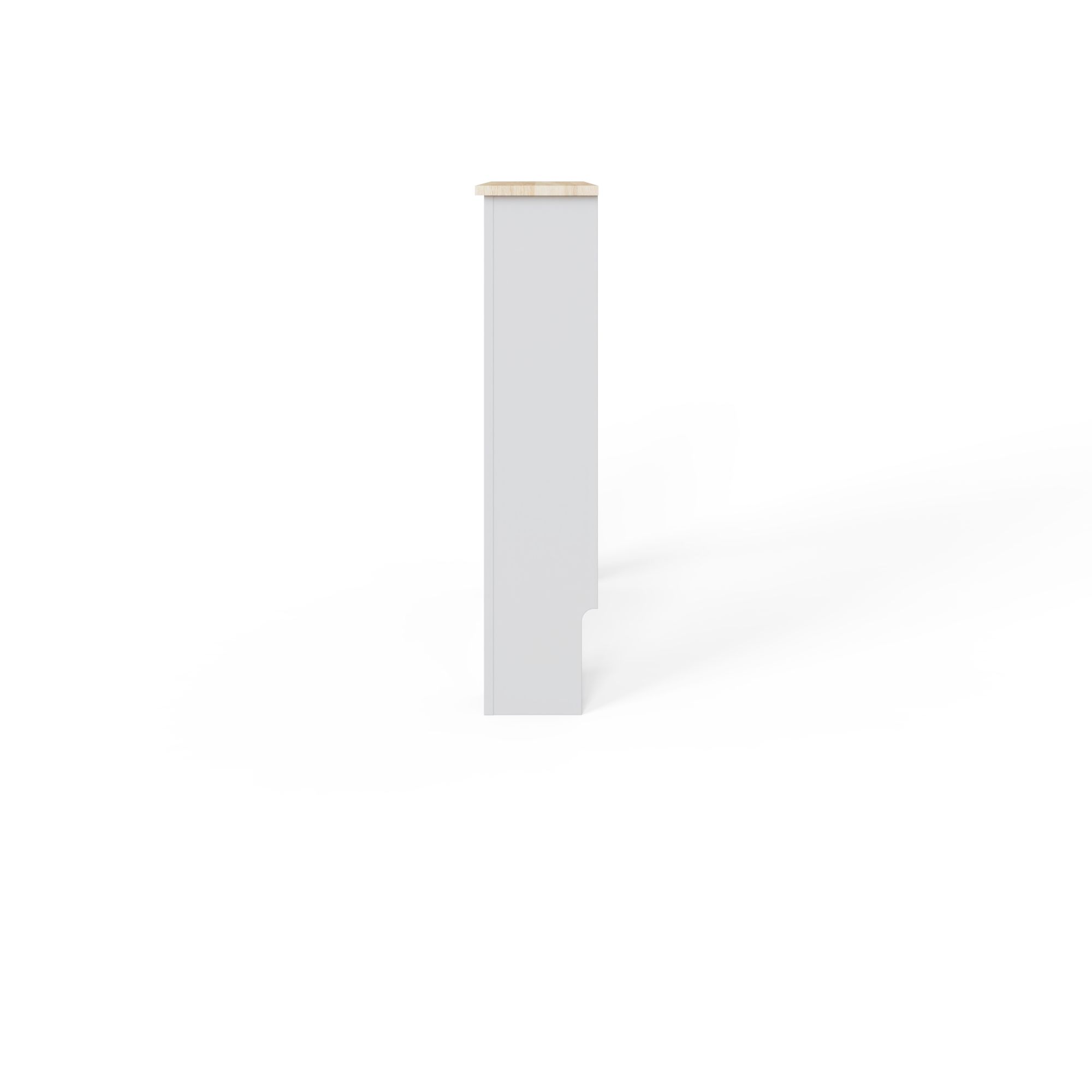 Elevate your home’s aesthetics with the Emily Radiator Cover, available in both sleek grey and classic white finishes. Perfectly blending with contemporary interior designs, this cover combines painted and melamine surfaces to ensure durability and ease of maintenance. The Emily Radiator Cover not only adds a touch of elegance to any room but also provides a practical solution for concealing your radiator. Create a warm and inviting atmosphere while keeping your living space organized and stylish with this elegant addition. The cover features a vertical slat grill pattern that exudes sophistication and style, with rounded edges to ensure safety. The top shelf provides an ideal space for displaying decorative items, storing books, or placing photo frames. This design not only enhances the aesthetics of your room but also adds an extra layer of safety for children and pets by preventing direct contact with hot radiators. The cover is easy to assemble and comes with instructions for hassle-free installation. Before placing your order, please measure your radiator to ensure that the internal dimensions of the radiator cover are slightly larger than those of the radiator for a proper fit.