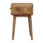 Combining mid-century elegance with practical design, this bedside table is handcrafted from 100% Solid Mango Wood in a warm Oak-ish finish. Featuring a single compact drawer with a subtle knob for discreet storage, it rests on tapered Nordic-style legs that add a touch of retro charm. Perfectly sized for smaller spaces, this piece offers functionality and style, making it an ideal addition to bedrooms or living areas. Its handmade, sustainable craftsmanship and natural wood grain ensure that no two pieces are exactly alike, giving your home a unique and timeless accent.