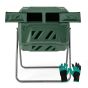 RAMY Compost Bin 160L Dual Chamber Composting Tumbler with Sliding Doors-Green