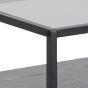 This bedside table combines sleek design with practical storage. Its top features smoked tempered glass, while the drawer and shelf are crafted from ash black melamine. Supported by a base of matt black rough powder-coated steel, this table includes an open compartment for additional storage. It's a stylish and functional addition to any bedroom.