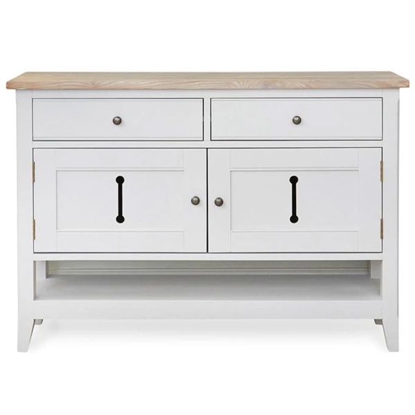 The new Ransley Grey Low Sideboard offers ample, versatile storage in one stunning, elegant piece. A small sideboard / console table with a cupboard, two drawers and an open shelf for superb flexible storage. The key feature to this collection is the exquisite hand-distressing on the grey limed tops, which is carried out by skilled craftsmen to create the unique eye-catching appearance that makes this collection so distinctive.