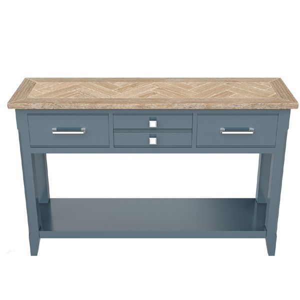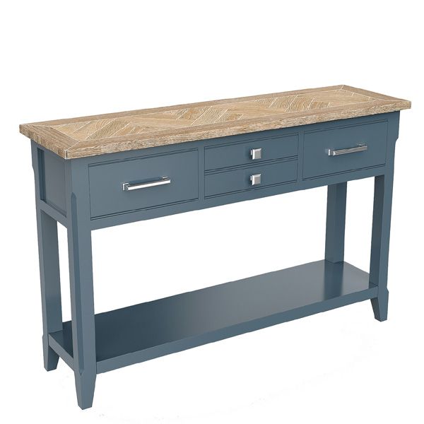 Ransley Small Console Table with Stylish 4 Drawer and Open Shelf - Blue
