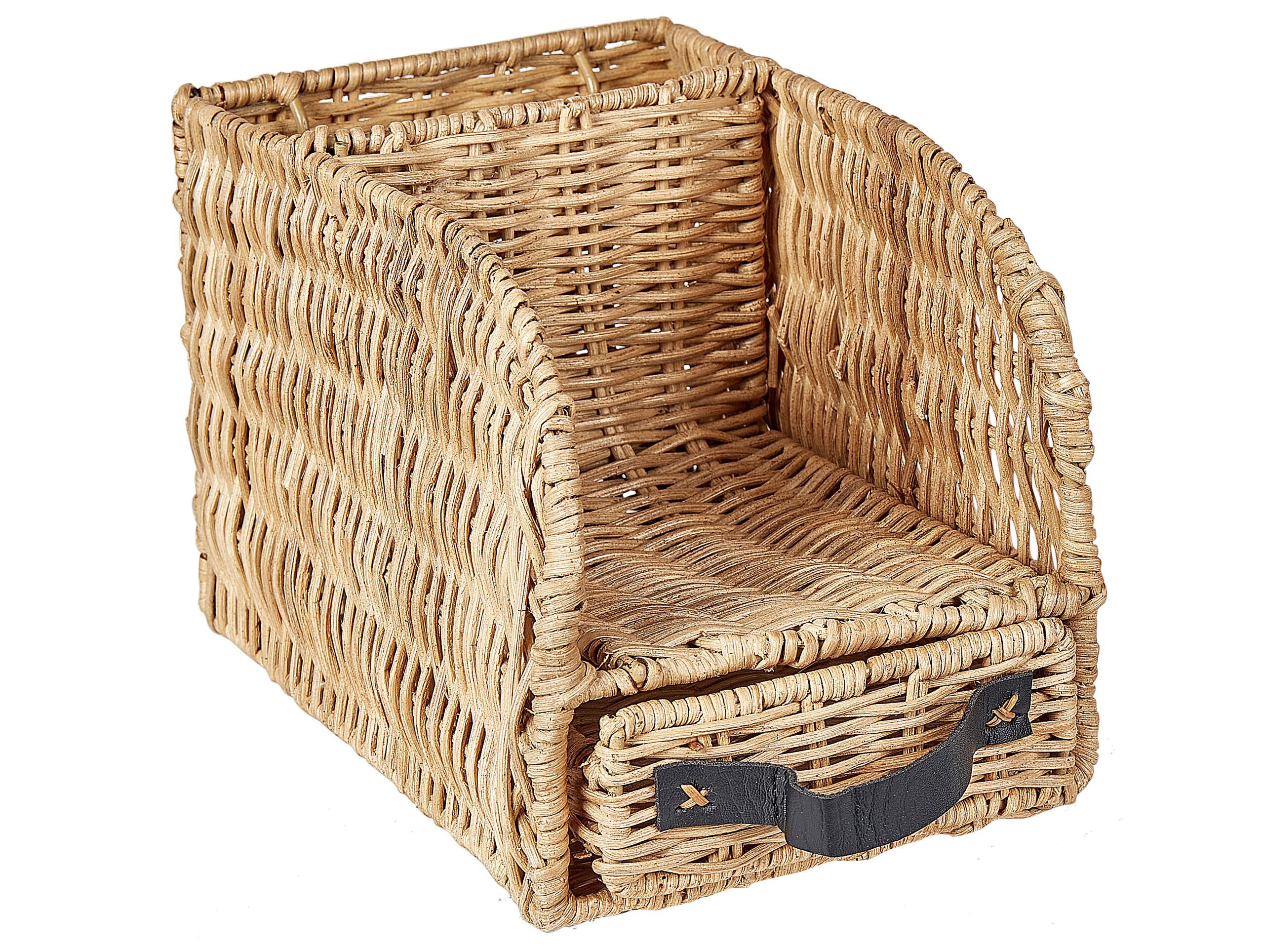 This desk organizer is designed to declutter your tabletop and make your office space functional. Complete with a drawer it offers space for books, magazines, letters or any items you wish to keep at hand. Made from natural-toned rattan wicker it gives off a natural, minimalistic charm. Details: Color: Light Wood, Natural. Main material: Rattan. Additional material: Faux Leather. Weight: 1 Assembly: Does Not Require Assembly