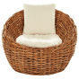 This round, handmade rattan chair is going to be an exceptional addition to your outdoor space. Thanks to its size, it can easily be placed on a balcony or a terrace, as well as in a larger garden. Made out of high-quality natural rattan, the piece is resistant to UV and stains. Additionally, the chair comes with a polyester cushion and seat pad, so sitting on it will be very comfortable. Details: Color: Natural, Beige. Main material: Rattan. Additional material: Polyester, Rattan. Material Composition: 100% Polyester Weight: 15 Assembly: Does Not Require Assembly Weight Capacity: 100 Cushions Dimensions: 45x47 Padding Thickness: 6 Seat Height: 41