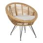 Refresh your home or surroundings with this versatile boho-inspired rattan chair, seamlessly crafted to grace both indoor and outdoor spaces. Its black iron legs ensure a steadfast and stable structure, promising longevity. Immerse yourself in the embrace of a cotton seat cushion that perfectly complements the piece's look and makes the entire chair extremely comfortable. The boho-style design lends a natural accent, effortlessly enhancing any home decor. Details: Color: Natural, Black, Beige. Main material: Rattan. Additional material: Iron, Cotton, Polyester, Viscose. Material Composition: 40% Polyester, 38% Cotton, 22% Viscose Weight: 10 Assembly: Partial Assembly Required Wood type: Calamus rotang Wood Origin: Indonesia Weight Capacity: 100 Cushions Dimensions: 59x59 Legs Height: 34 Padding Thickness: 5 Seat Height: 48