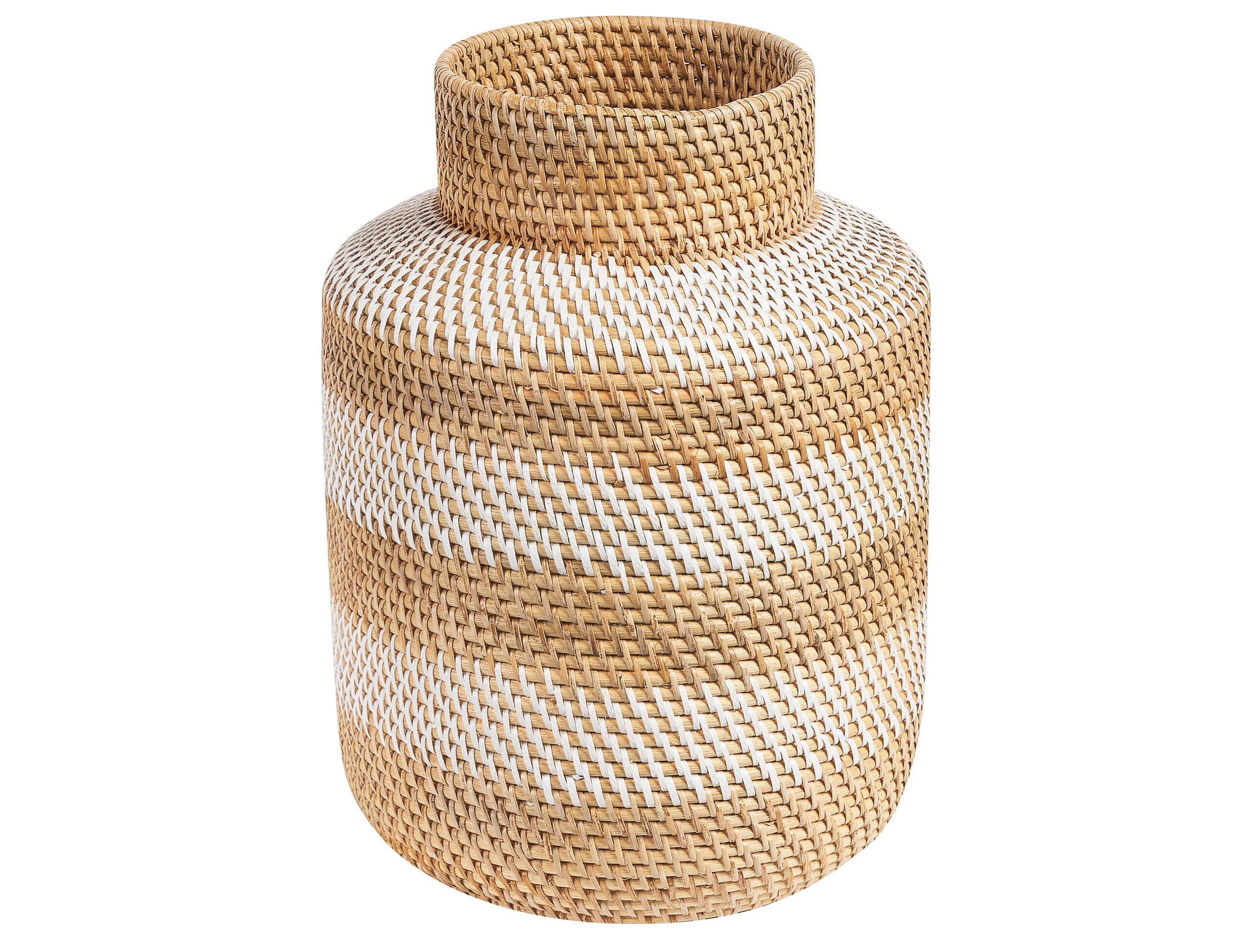 Create an atmosphere of peace and harmony in your home with this beautiful rattan vase. It was made of rattan to get as close to nature as possible and reflect its natural beauty. It will work well in Scandinavian and Japandi style interiors, as a decoration for a table or chest of drawers. Details: Color: White, Natural, Beige. Main material: Rattan. Additional material: Synthetic Material. Weight: 0.4 Assembly: Does Not Require Assembly