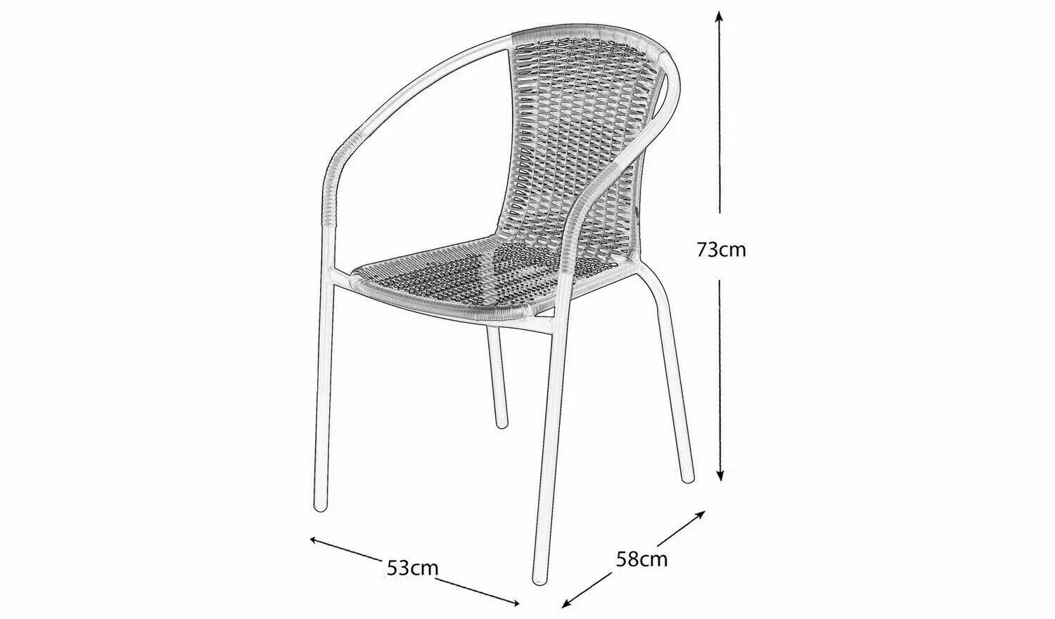 Perfect for an intimate setting, the brown 2-seater set is ideal for balconies or smaller gardens. Made from 100% hand-woven rattan-effect, the set includes 2 chairs and a frosted glass-topped table. Enjoy breakfast for 2 or a peaceful cuppa at this wonderful small table and chairs. Don't sit indoors and miss out on the warmer weather! The chairs stack for easy storage and to create a little extra room when the set is not in use.