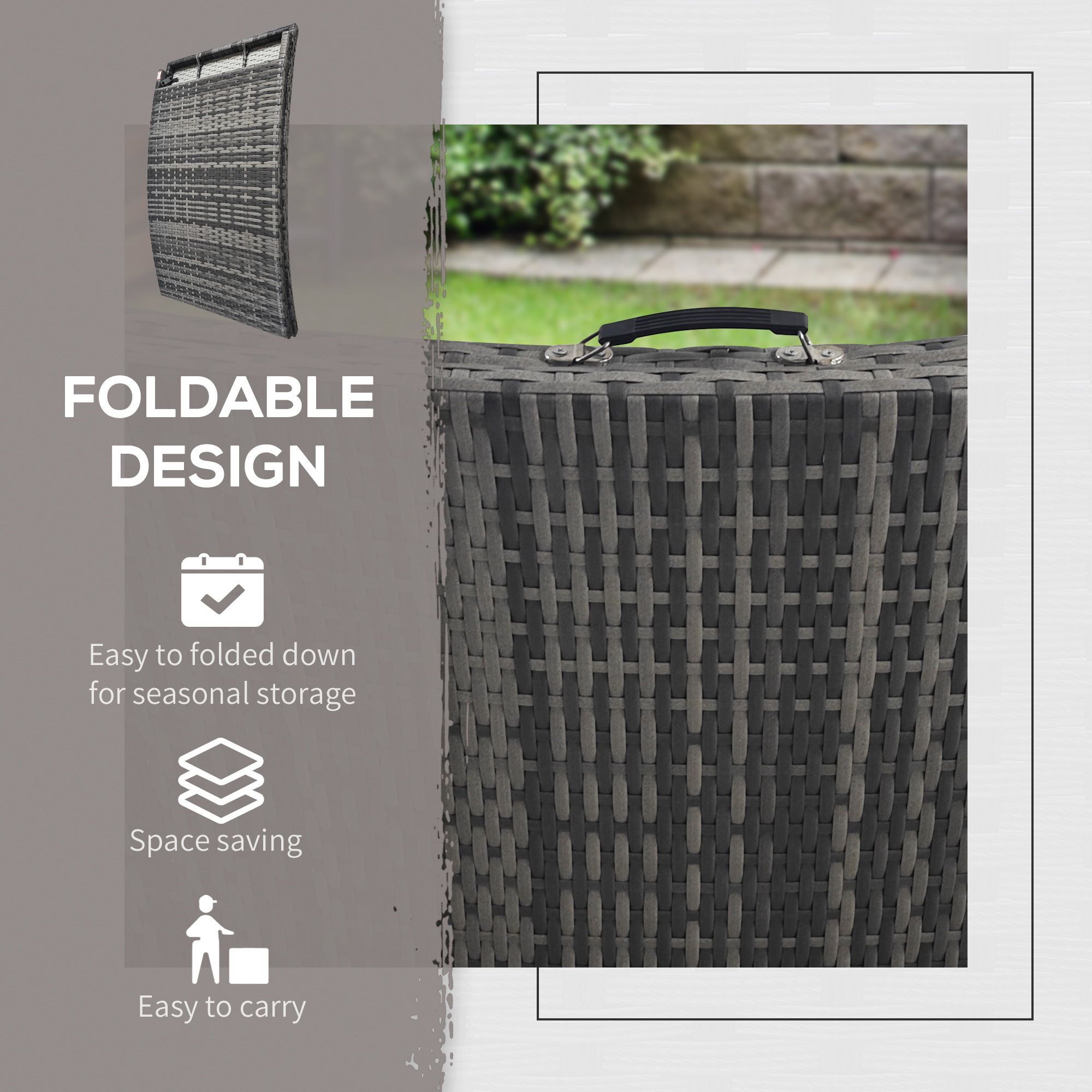 Rattan Folding Sun Lounger Outdoor Chair with Cushion and Pillow Grey