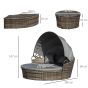 Rattan Garden Furniture Cushioned Wicker Round Sofa Bed with Coffee Table Patio Conversation Furniture Set - Grey