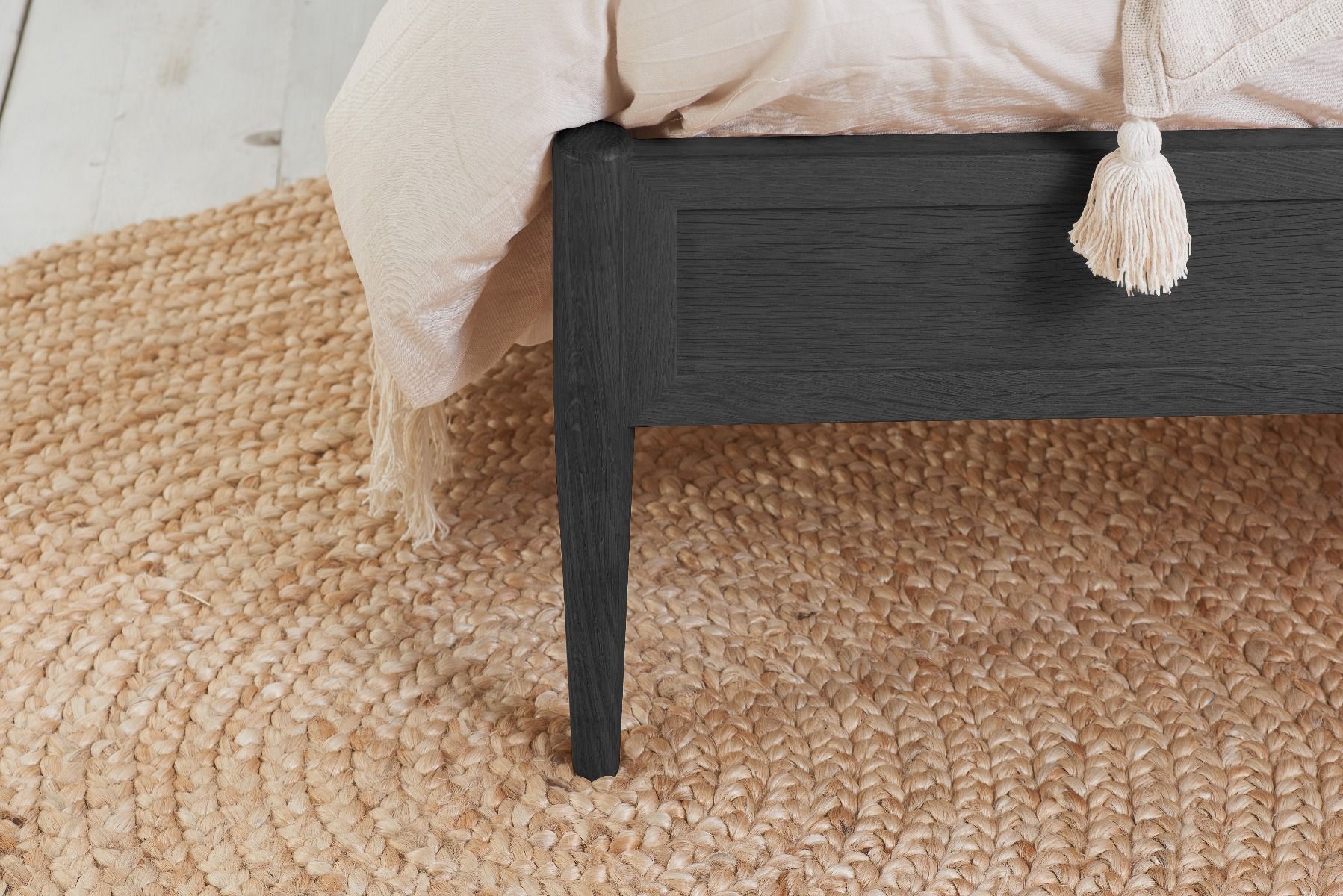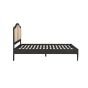Rattan Headboard Styled Solid Slats Black Oak Bed Frame - Kingsize 5ft