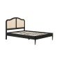 Rattan Headboard Styled Solid Slats Black Oak Bed Frame - Standard Double 4ft6