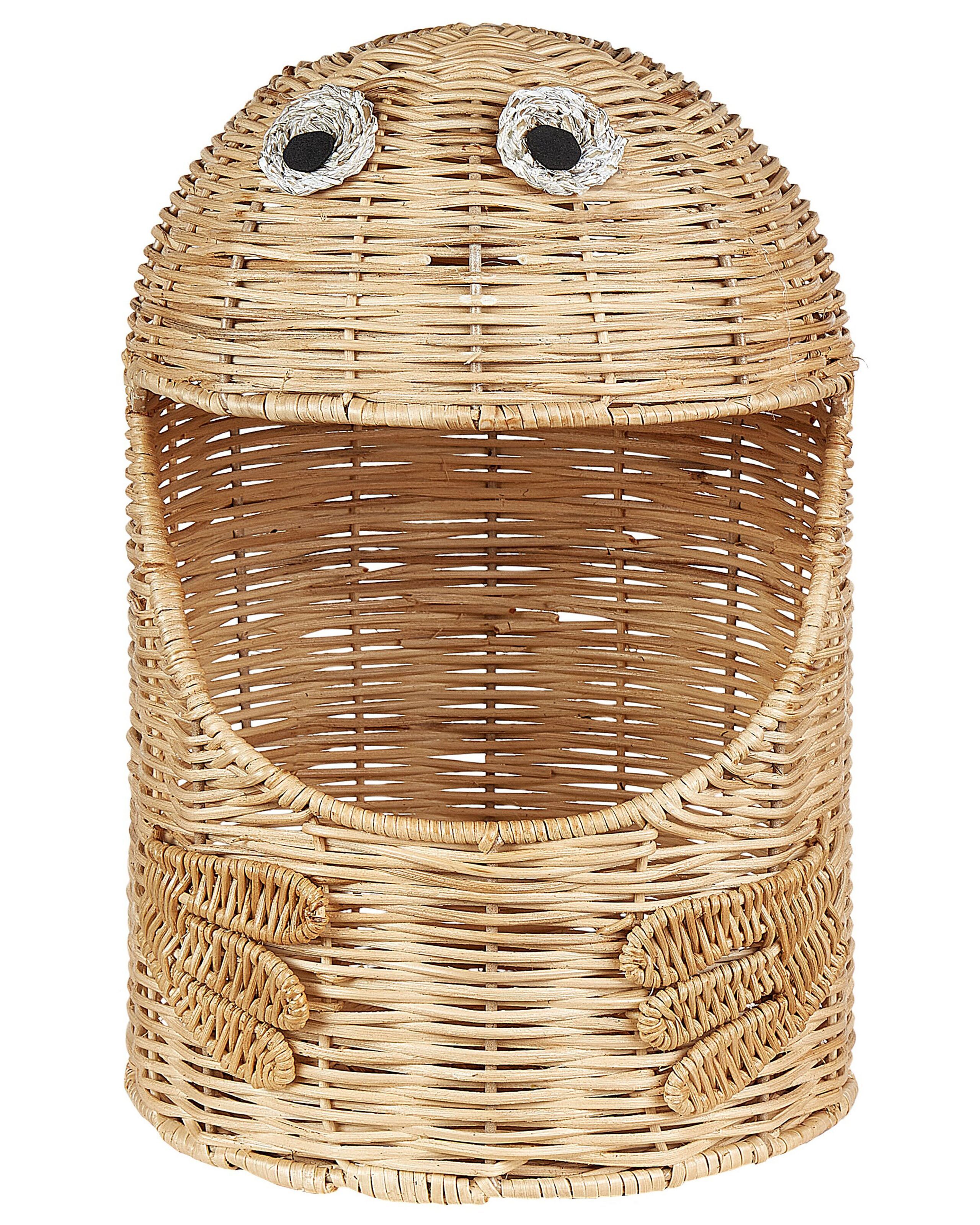 Crafted meticulously from durable rattan, our whimsically made toy basket boasts an endearing monster shape. Designed with amusing eyes, this whimsical storage solution encourages kids to feed their monster toys while turning tidying up into an enjoyable game. It's the perfect blend of fun and functionality for your child's play area. Details: Color: Light Wood, Natural. Main material: Rattan. Weight: 1 Assembly: Does Not Require Assembly