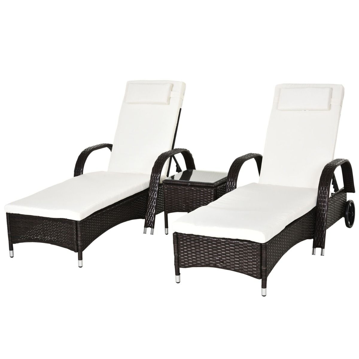 The rattan lounger set comes complete with 2 loungers, 1 side table and cushions. The seat has 5 adjustable positions to give maximum relaxation and comfort. The side table also has a glass top to keep your drinks at easy reach, and the set can be used indoors and outdoors.
